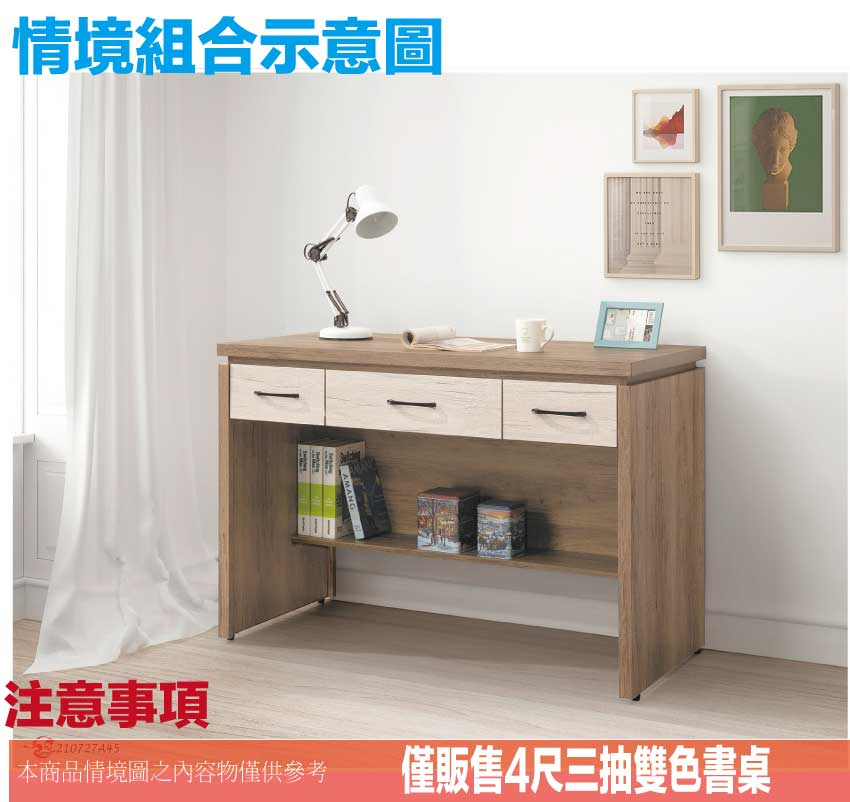 - ◆產品名稱:【綠家居】愛達雙色4尺三抽書桌