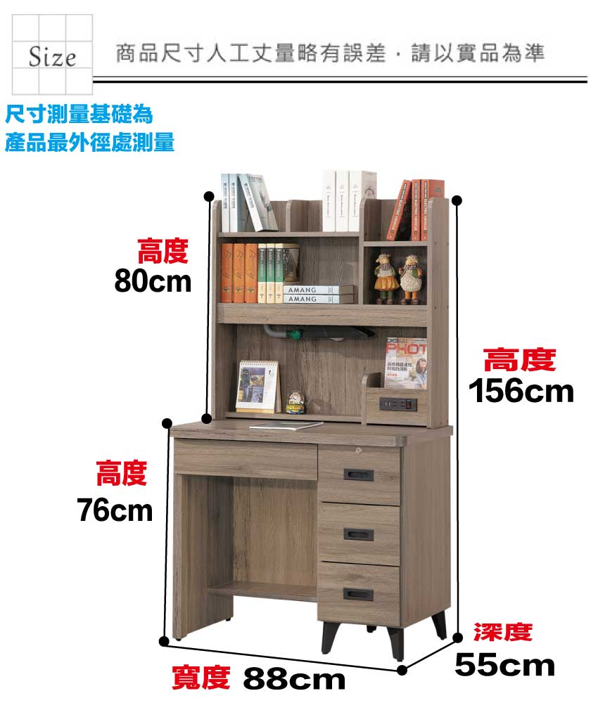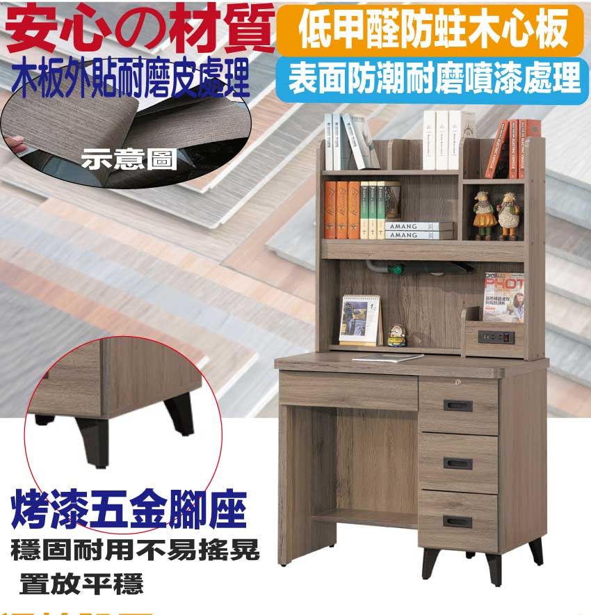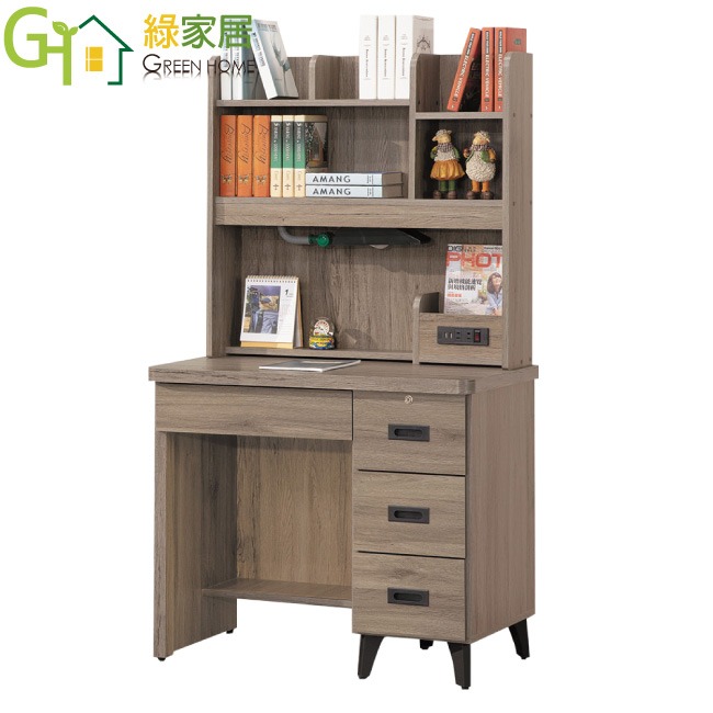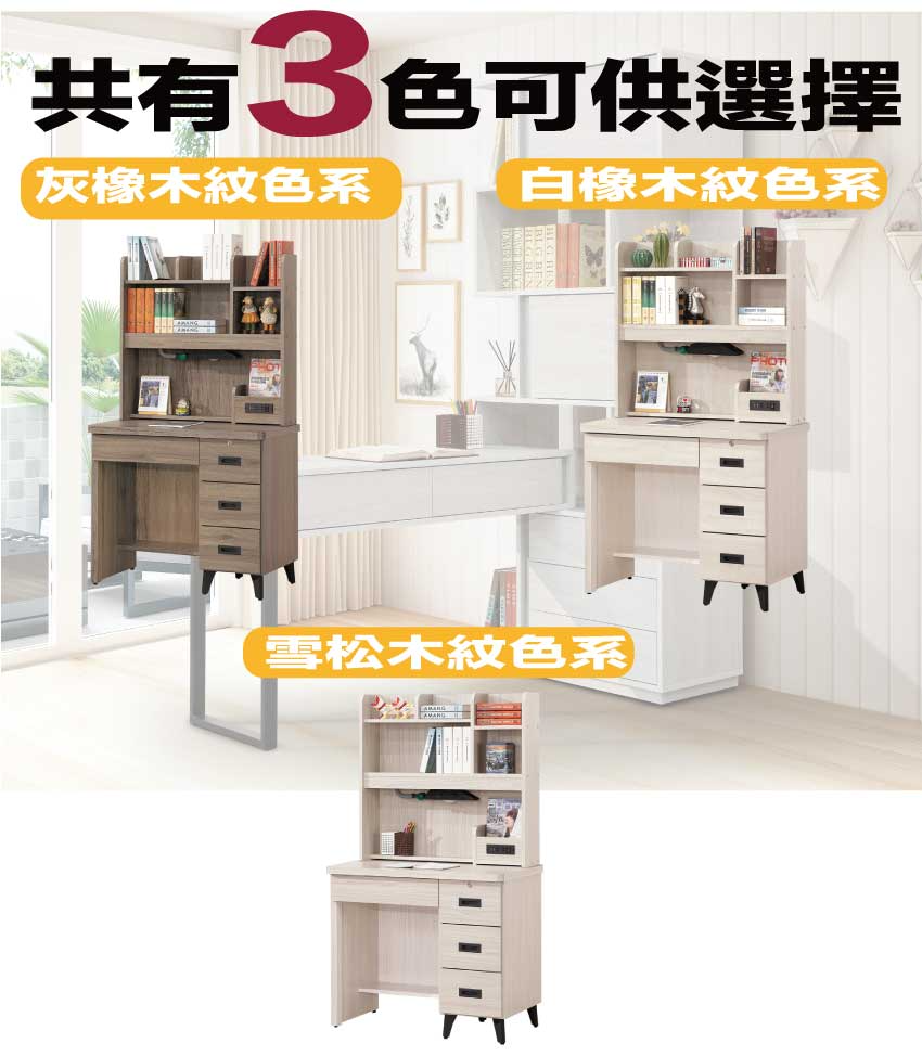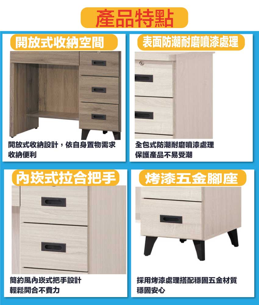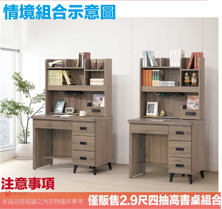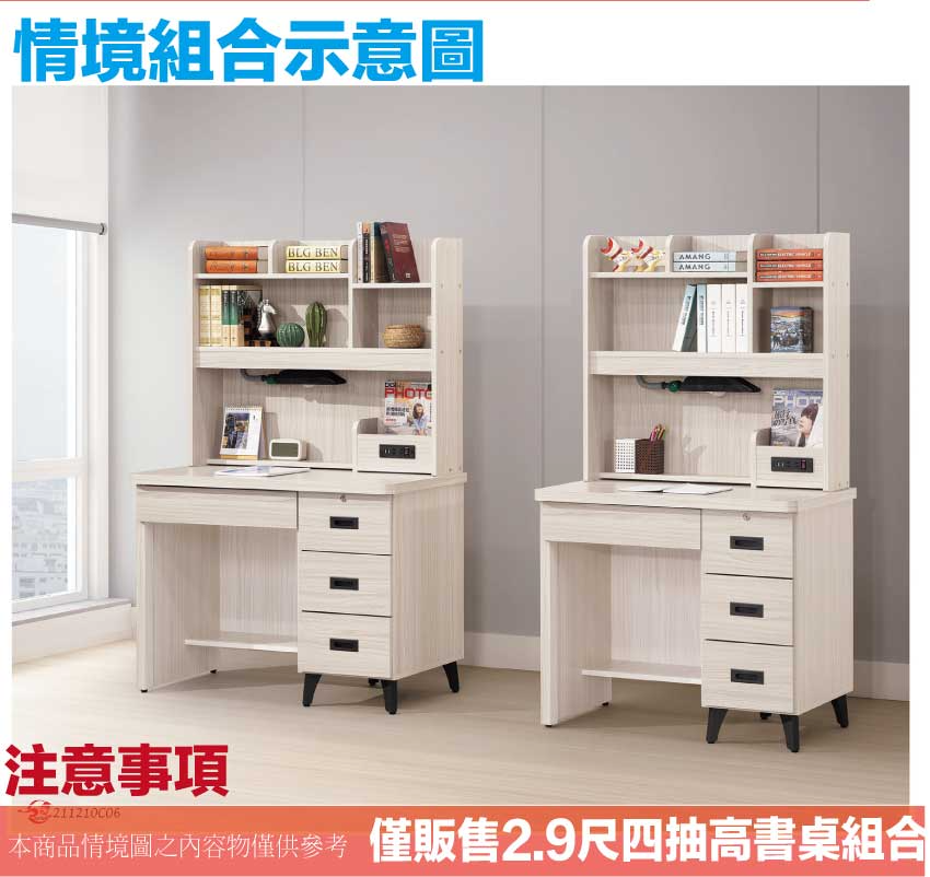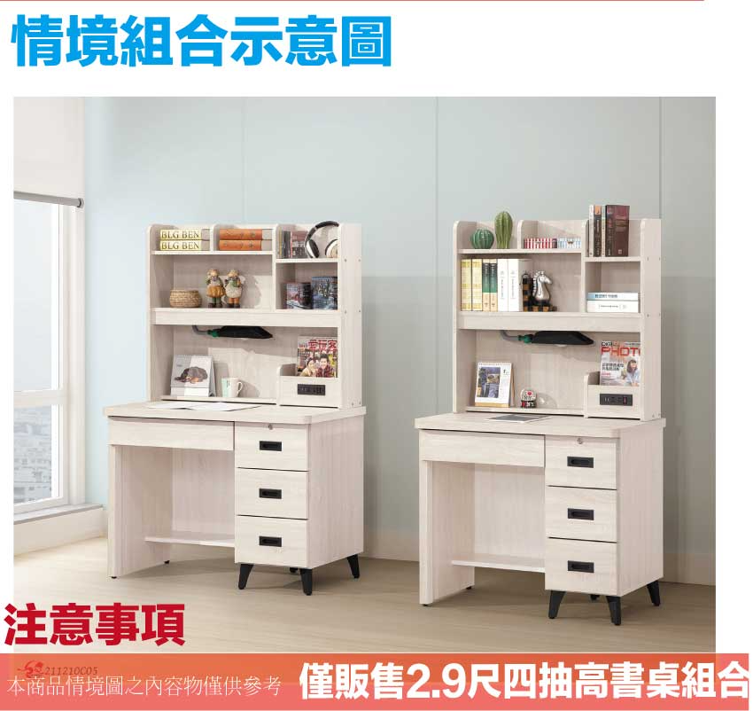 - ◆產品名稱:【綠家居】伊達2.9尺四抽插座高書桌組合(三色可選+附LED可調書桌燈)