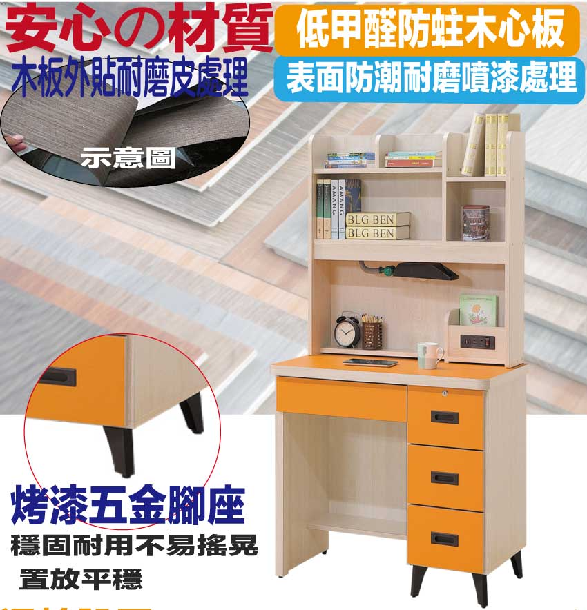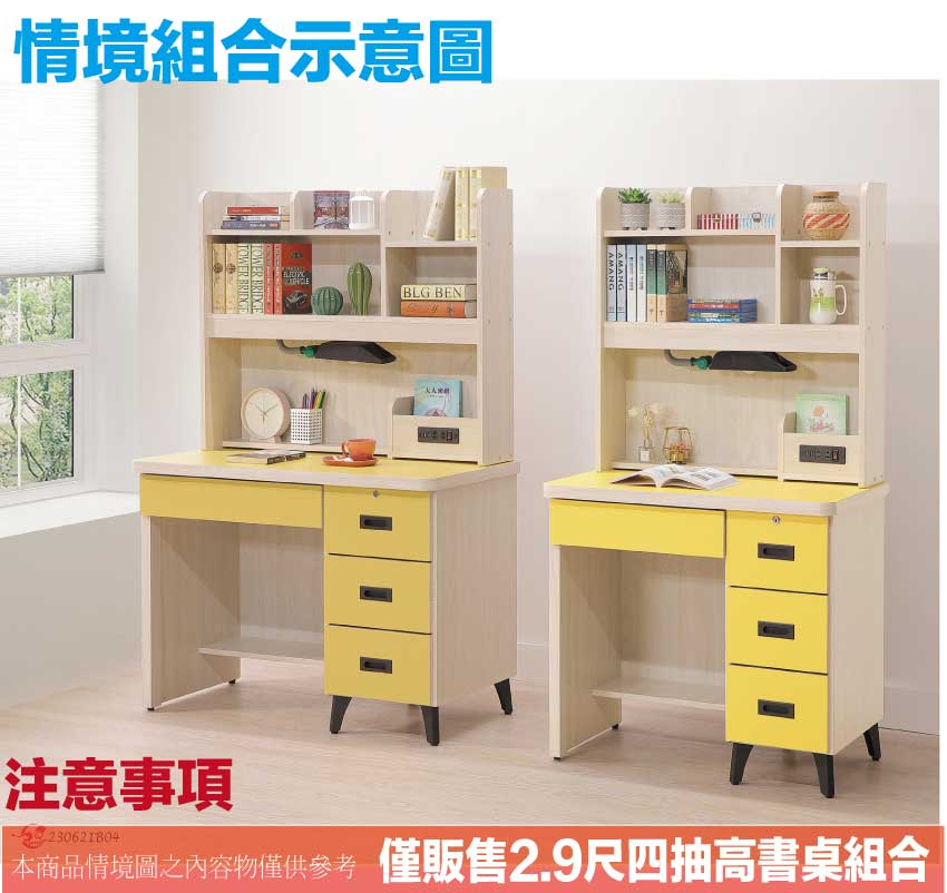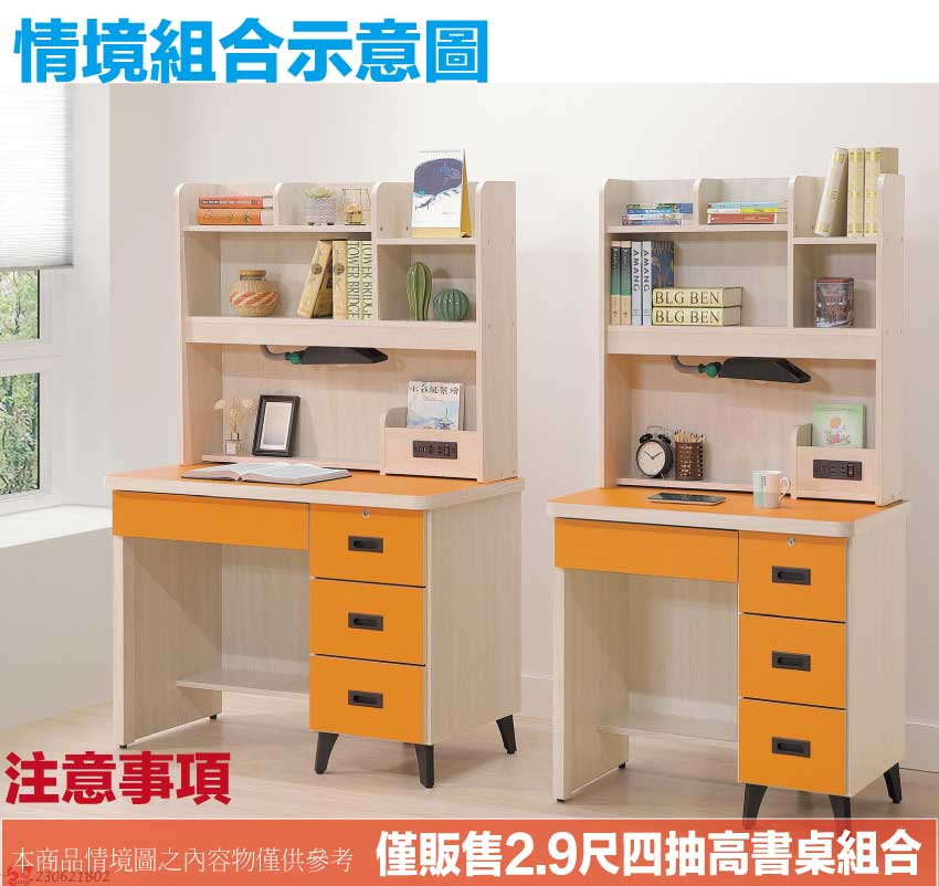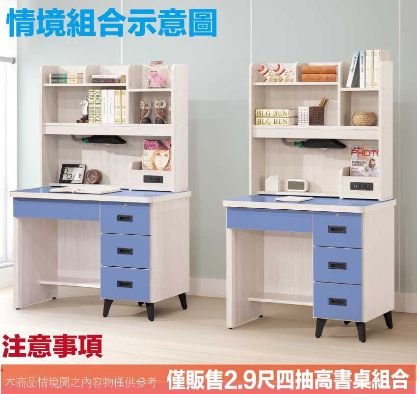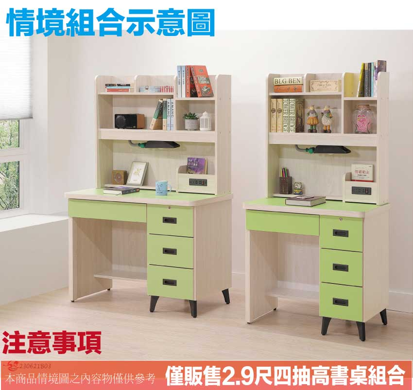 - ◆產品名稱:【綠家居】馬達2.9尺四抽插座高書桌組合(六色可選+附LED可調書桌燈)