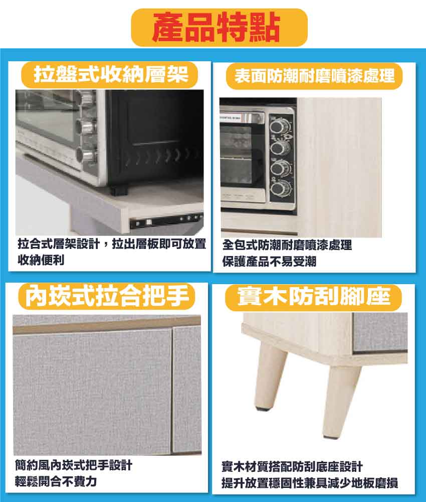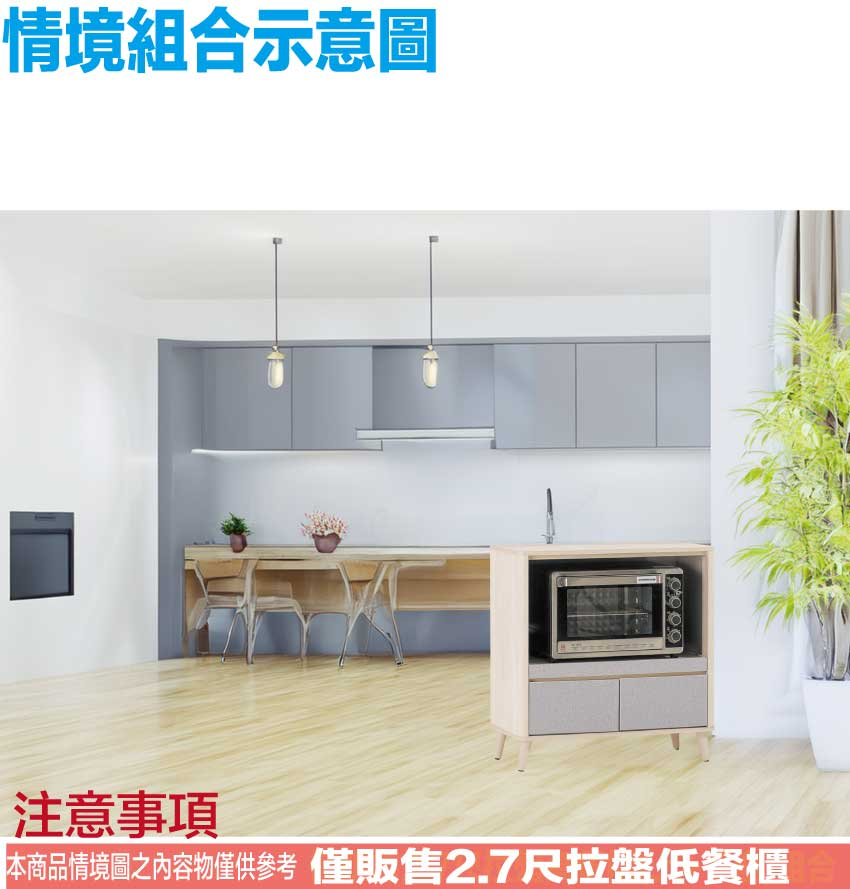 - ◆產品名稱:【綠家居】愛利雙色2.7尺二抽拉盤低餐櫃