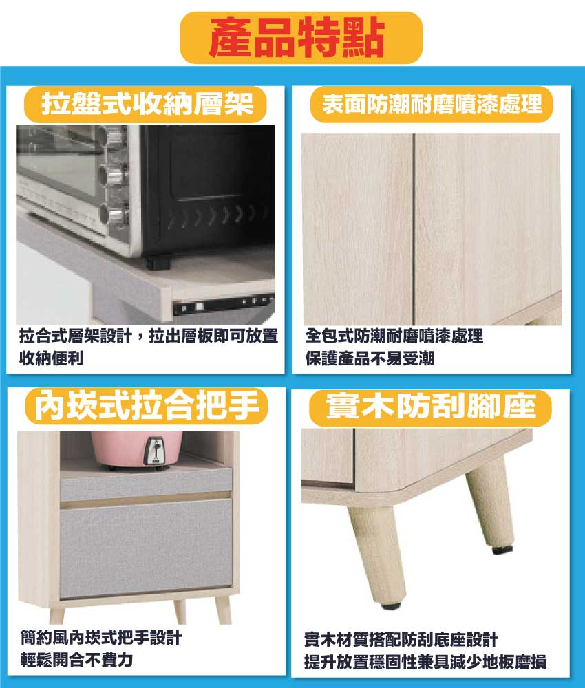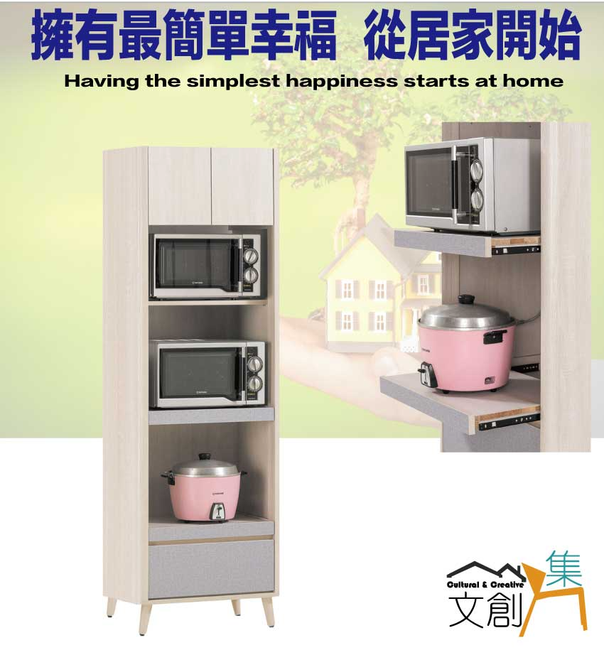 - ◆產品名稱:【綠家居】愛利雙色2尺二門單抽拉盤電器櫃/高餐櫃