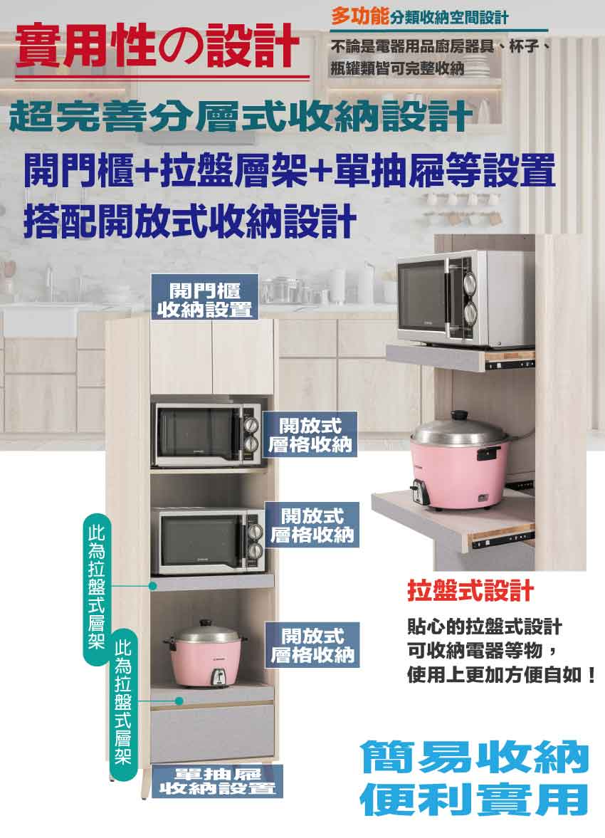 【綠家居】愛利雙色2尺二門單抽拉盤電器櫃/高餐櫃 木紋雙色系+安心材質製造,使用放心+搭配居家更便利,採用防蛀木心板+五金滑軌結構+防刮實木腳座等安心材質製造 ,外層採用防潮耐磨噴漆處理搭配採用開門櫃+單抽屜+開放層格+拉盤層架等收納空間設計,全由專人配送到家,專業安心服務,替你省下更多時間!