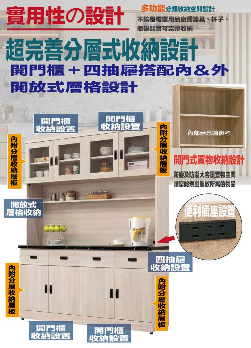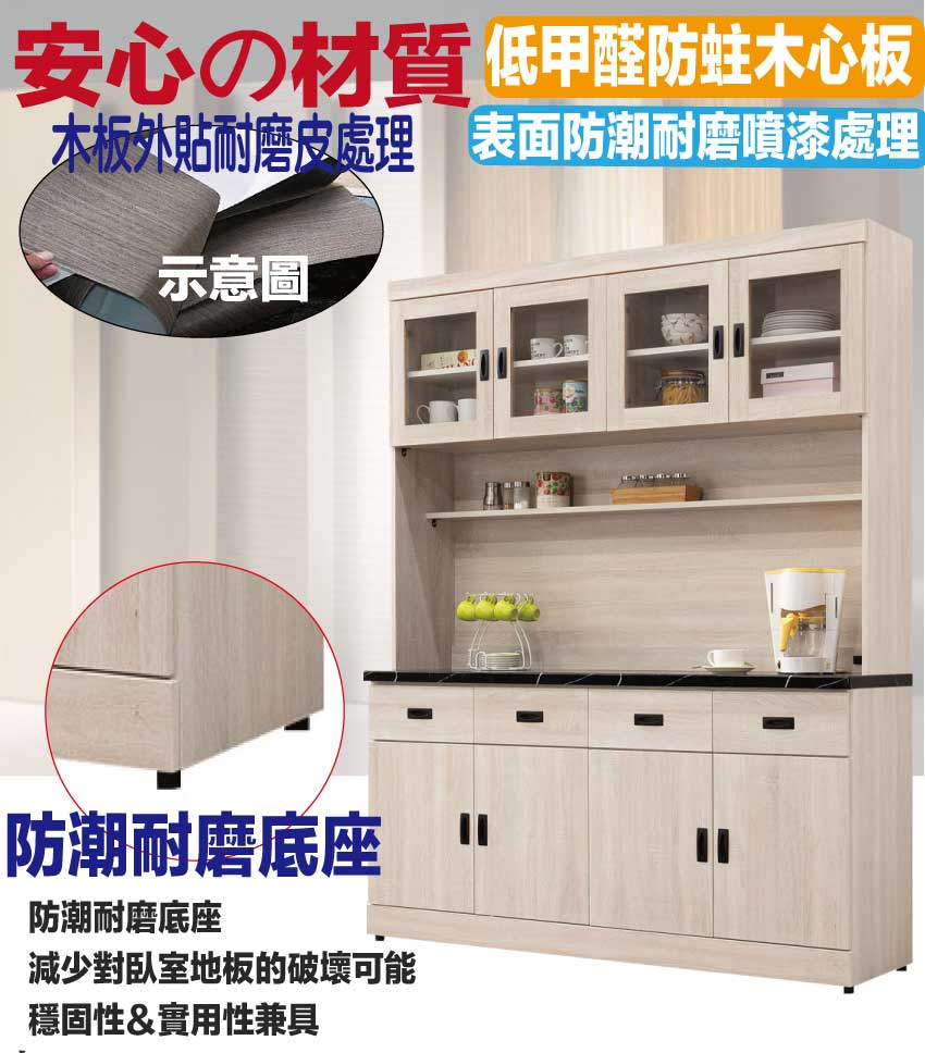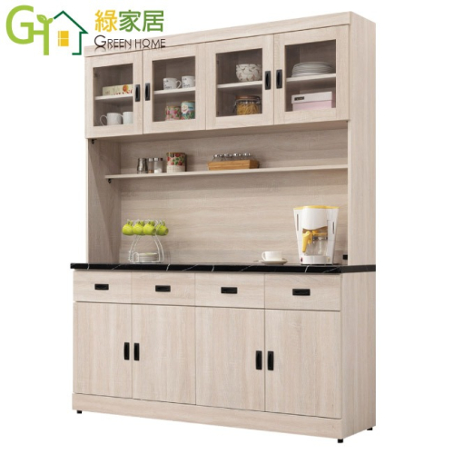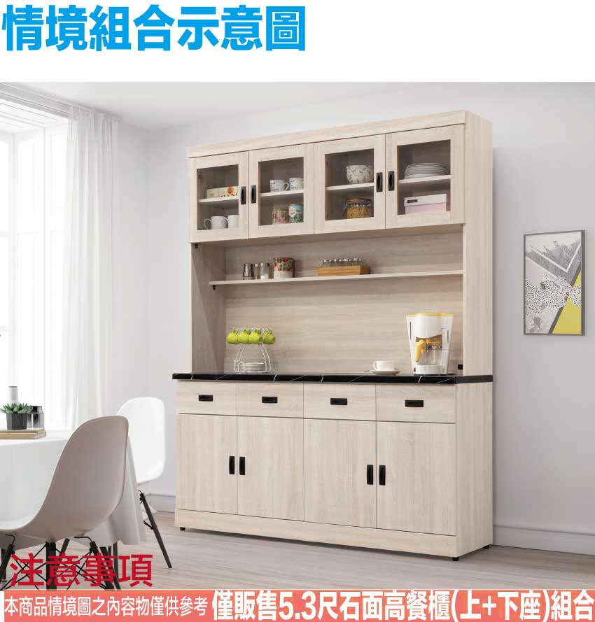【綠家居】安可5.3尺雲紋石面高餐櫃組合 淺橡木紋色系+安心材質製造,使用放心+搭配居家更便利,採用防蛀木心板+五金滑軌結構+防夾手緩衝門片五金+防潮耐磨底座+2cm雲紋石面桌面板等安心材質製造 ,外層採用防潮耐磨噴漆處理搭配採用開門櫃+四抽屜+內&外開放層格等收納空間設計,全由專人配送到家,專業安心服務,替你省下更多時間!