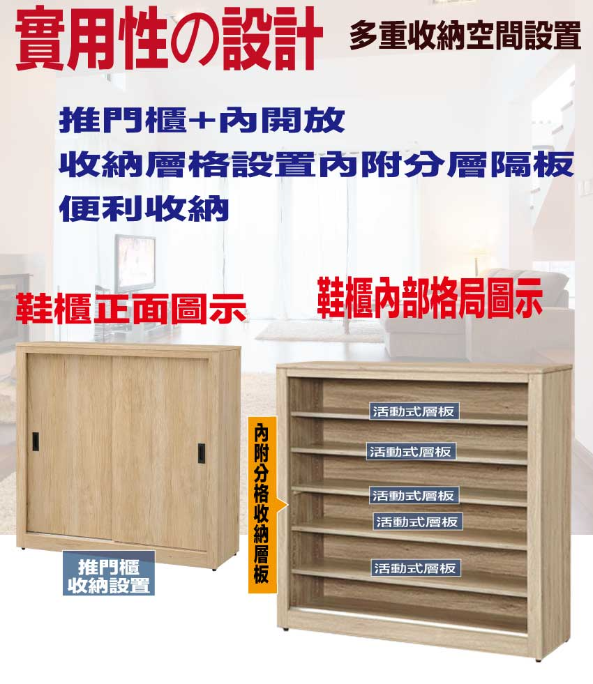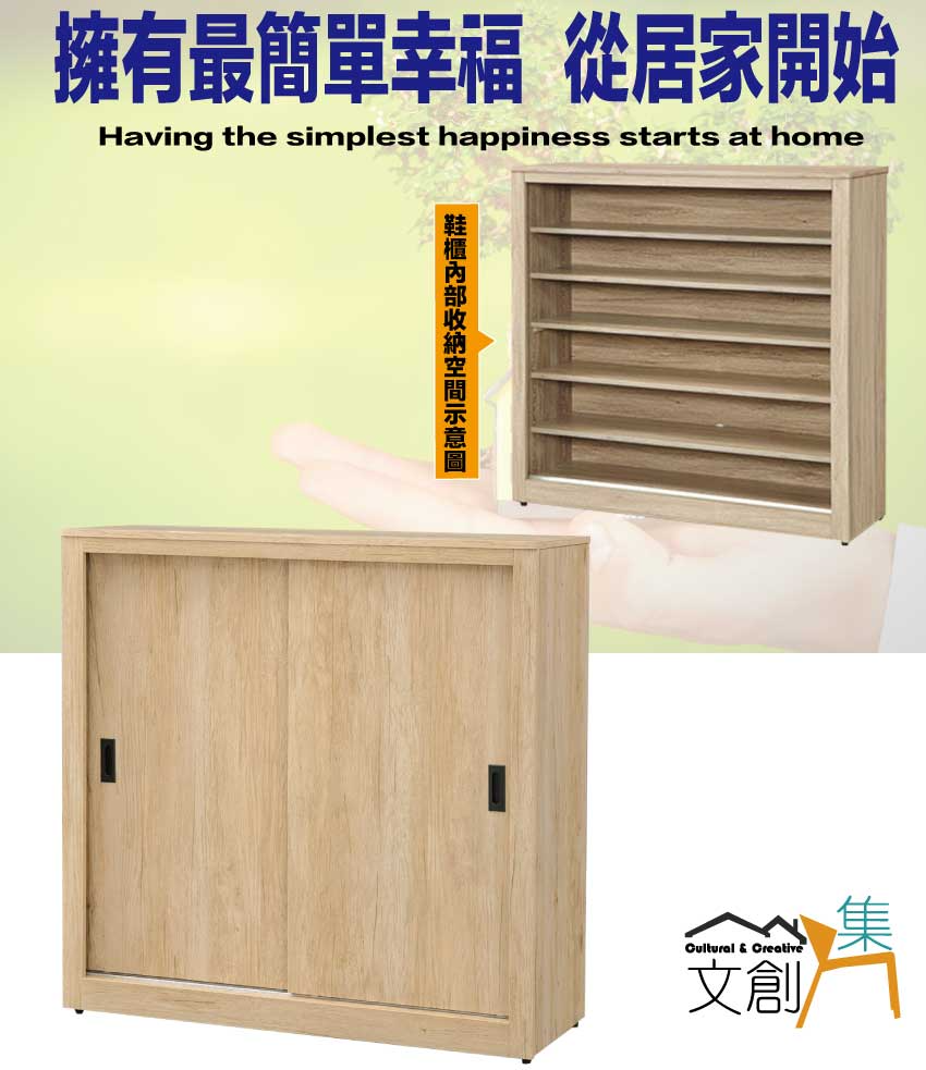 - ◆產品名稱:【綠家居】卡格原橡4尺推門鞋櫃