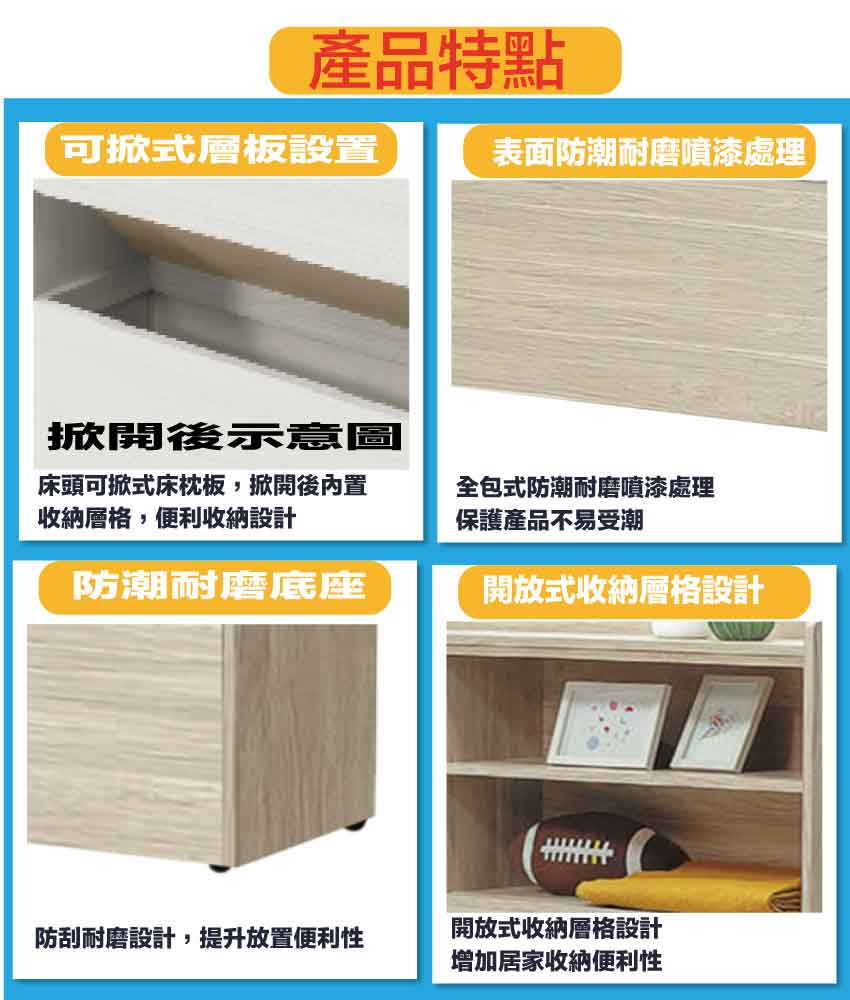 採用防蛀木心板+防潮耐磨底座等安心材質製造