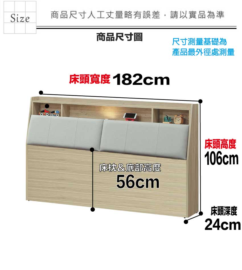 床頭尺寸:(寬)182x(深)24x(高)106/公分