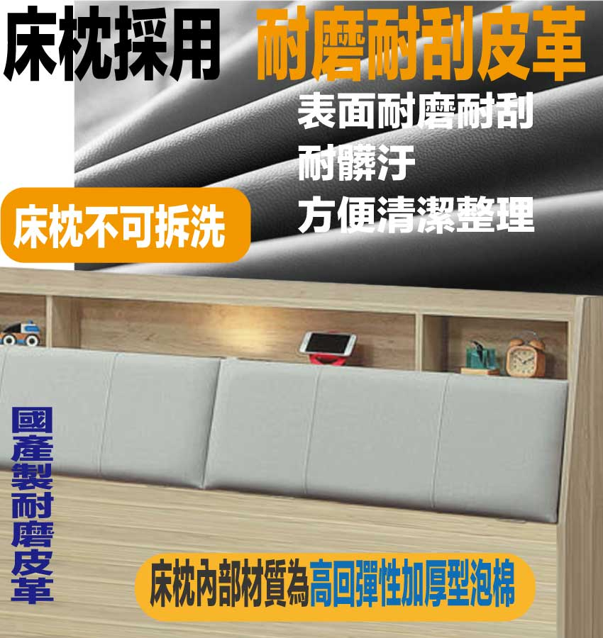 - ◆產品名稱:【綠家居】畢克爾6尺雙人加大耐刮皮革夜燈床頭箱(不含床底+不含床墊)