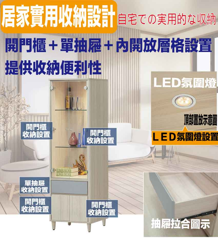 - ◆產品名稱:【綠家居】莫凡雙色2尺四門單抽展示櫃
