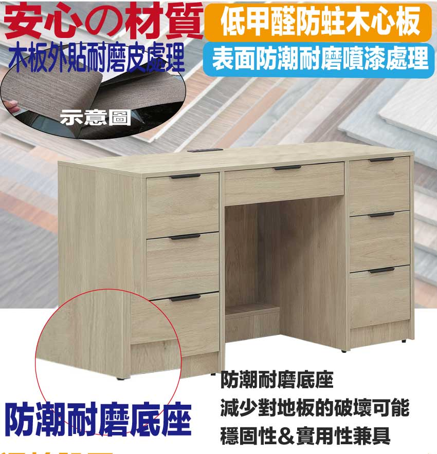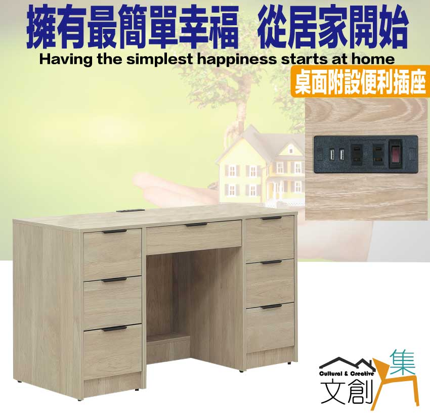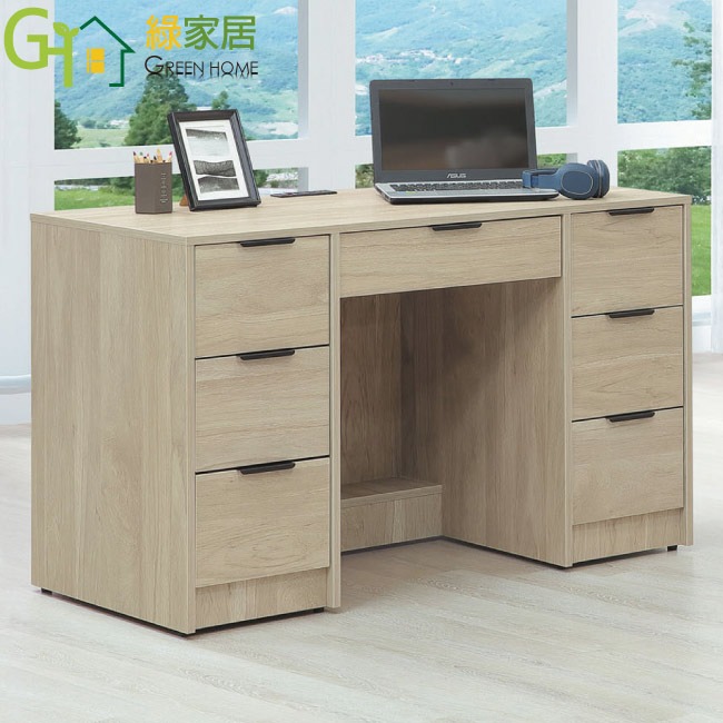 【綠家居】畢克爾4尺七抽書桌(桌面插座設置) 橡木紋色系+安心材質製造,使用放心+搭配居家更便利,採用防蛀木心板+防潮耐磨底座+五金滑軌結構等安心材質製造 ,外層採用防潮耐磨噴漆處理搭配採用七抽屜+桌面插座設置+開放桌面等收納空間設計,全由專人配送到家,專業安心服務,替你省下更多時間!