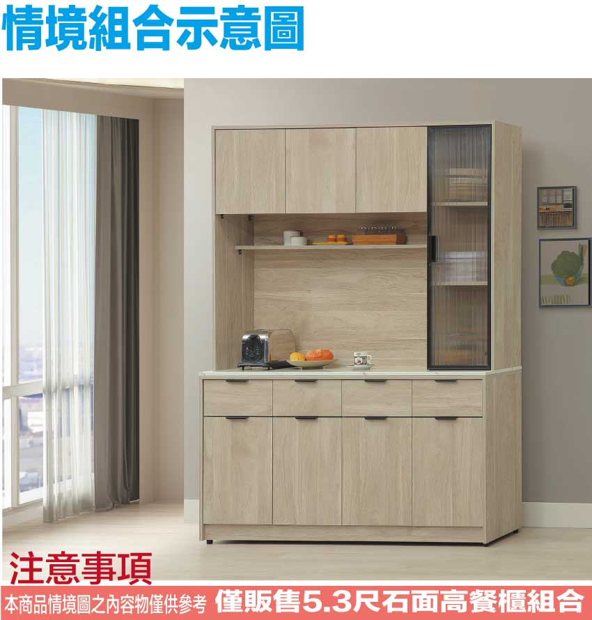 - ◆產品名稱:【綠家居】畢克爾5.3尺雲紋石面鋁框高餐櫃組合