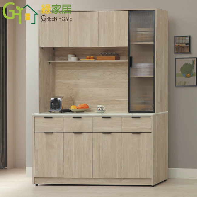 【綠家居】畢克爾5.3尺雲紋石面鋁框高餐櫃組合 橡木紋色系+安心材質製造,使用放心+搭配居家更便利,採用防蛀木心板+防潮耐磨底座+黑漆鋁製門框+長虹PC材質門片+防夾手緩衝門片五金+五金滑軌結構+20mm雲紋石面桌面板等安心材質製造 ,外層採用防潮耐磨噴漆處理搭配採用開門櫃+四抽屜+內&外開放層格等收納空間設計,全由專人配送到家,專業安心服務,替你省下更多時間!