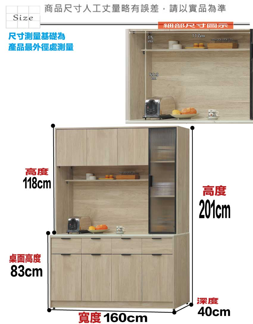 尺寸:(寬)160x(深)40x(高)201/公分