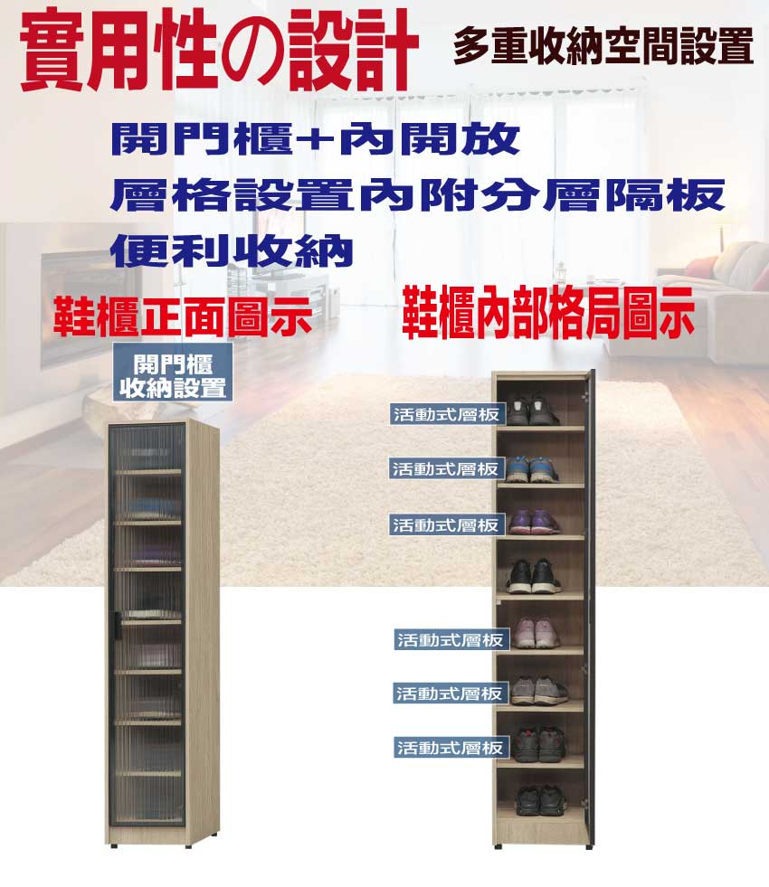 - ◆產品名稱:【綠家居】畢克爾1.3尺單門鋁框高鞋櫃