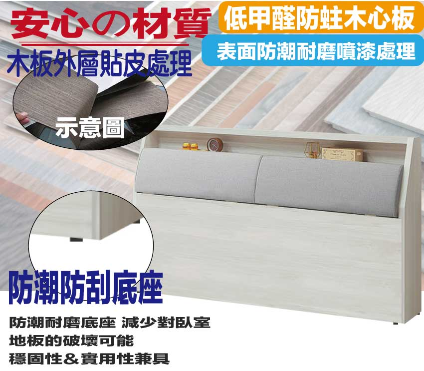 材質:防蛀木心板+防潮耐磨底座+耐磨耐刮皮革+高回彈泡棉