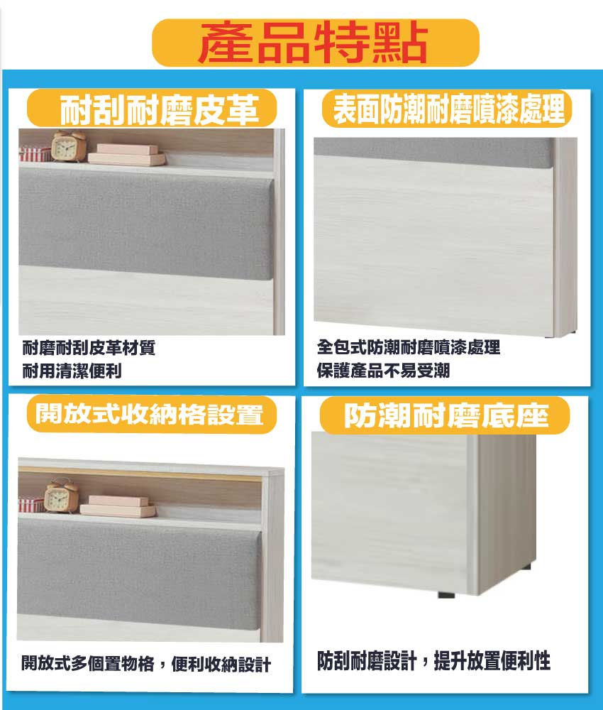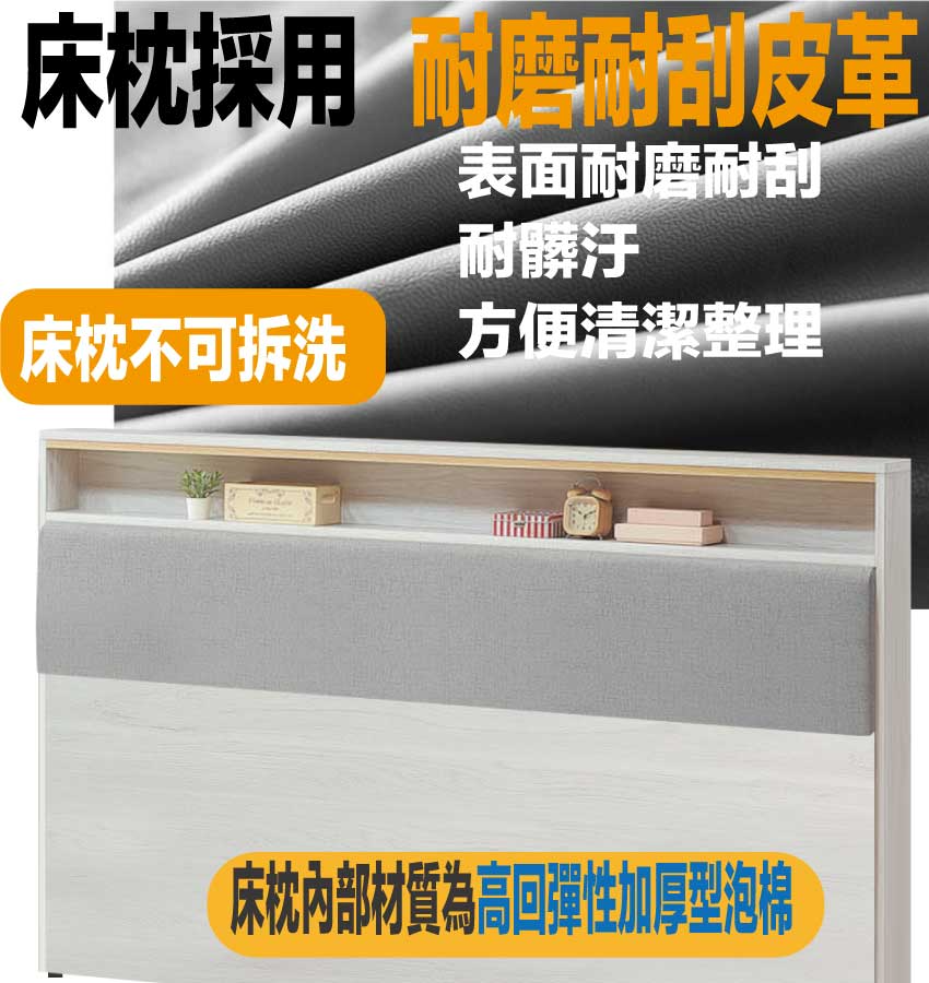 【綠家居】歌斯5尺雙人耐磨皮革床頭片 淺橡木紋色系+安心材質製造,使用放心+搭配居家更便利,採用防蛀木心板+防潮耐磨底座+耐磨耐刮皮革+高回彈泡棉等安心材質製造 ,外層採用防潮耐磨噴漆處理搭配床頭採用開放收納層格收納空間設計,全由專人配送到家,專業安心服務,替你省下更多時間!