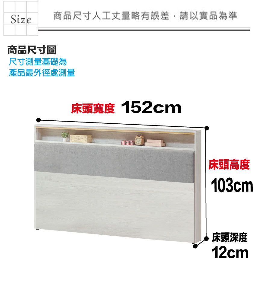 床頭尺寸:(寬)152x(深)12x(高)103/公分
