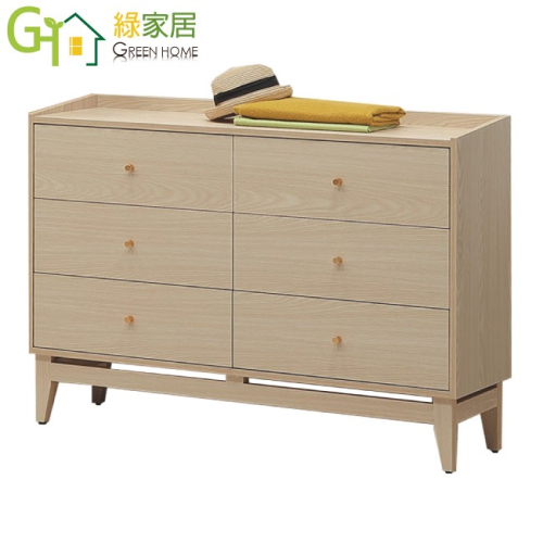 【綠家居】萬斯4尺六抽斗櫃 橡木紋色系+安心材質製造,使用放心+搭配居家更便利,採用防蛀木心板+防潮耐磨腳座+五金滑軌結構等安心材質製造 ,外層採用防潮耐磨噴漆處理搭配採用六抽屜+開放式桌面等收納空間設計,全由專人配送到家,專業安心服務,替你省下更多時間!
