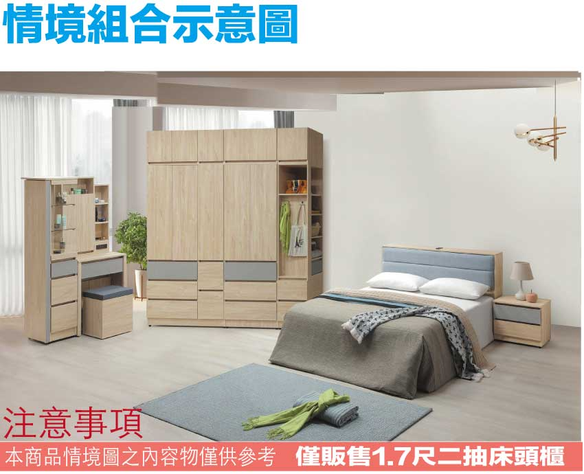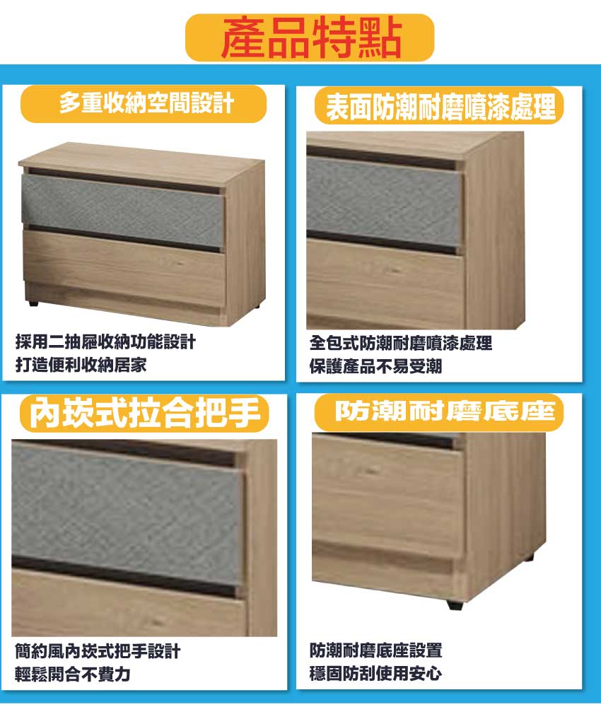 - ◆產品名稱:【綠家居】唐斯1.7尺二抽床頭櫃