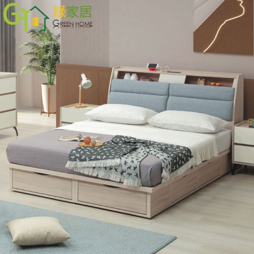 【綠家居】美斯6尺雙人加大貓抓布六抽床台組合(床頭箱+六抽床底+不含床墊) 橡木紋色系+安心材質製造,使用放心+搭配居家更便利,採用防蛀木心板+防潮耐磨底座+耐刮貓抓布+高回彈泡棉等安心材質製造 ,外層採用防潮耐磨噴漆處理搭配床頭箱可掀式床枕板+內&外收納層格+便利插座設置+床底座三邊開合六抽屜等收納空間設計,全由專人配送到家,專業安心服務,替你省下更多時間!