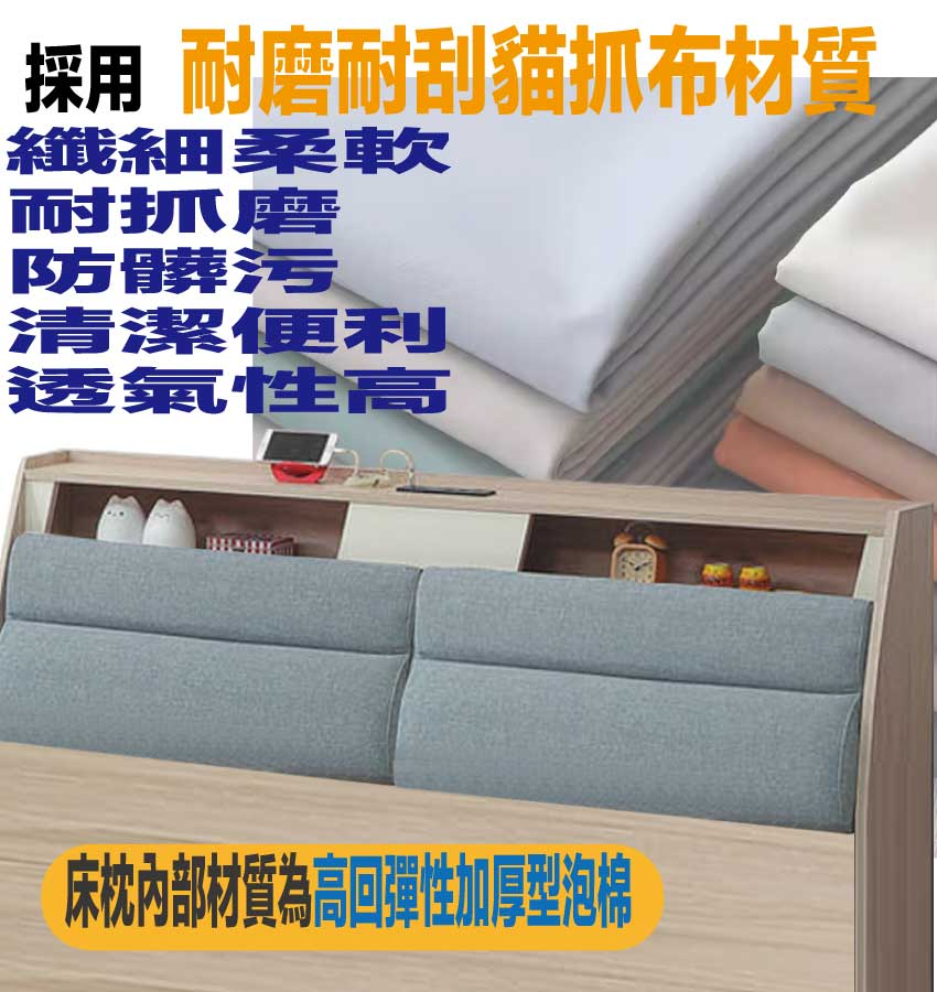 - ◆產品名稱:【綠家居】美斯6尺雙人加大貓抓布六抽床台組合(床頭箱+六抽床底+不含床墊)
