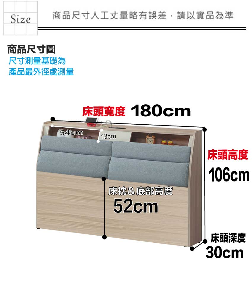 床頭尺寸:(寬)180x(深)30x(高)106/公分
