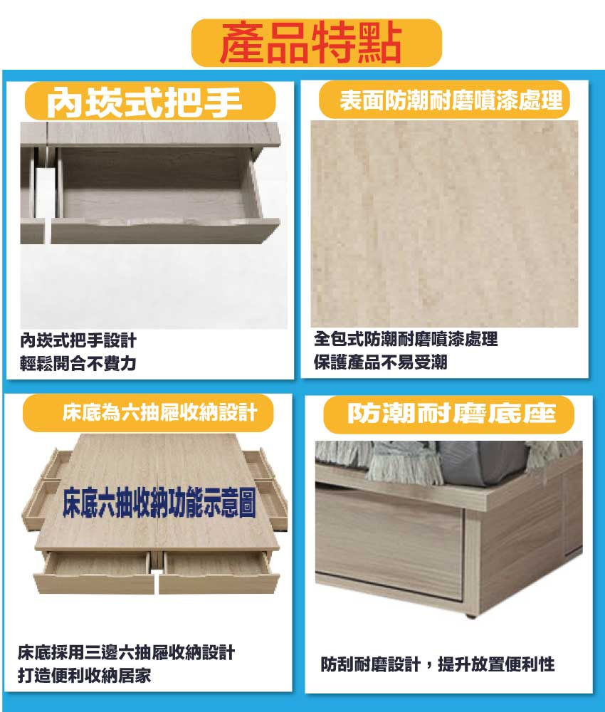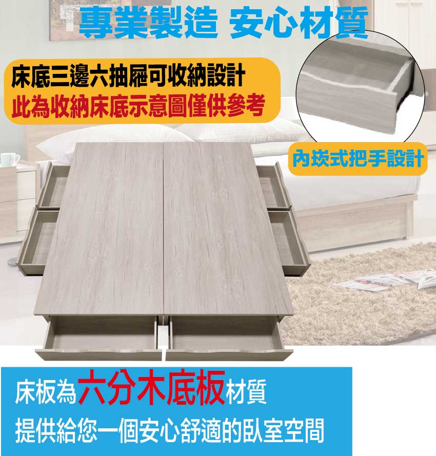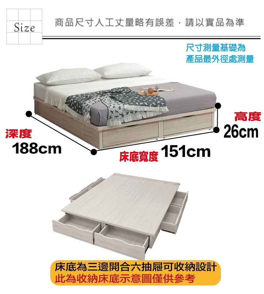 - ◆產品名稱:【綠家居】美斯5尺雙人六抽床底(不含床墊)