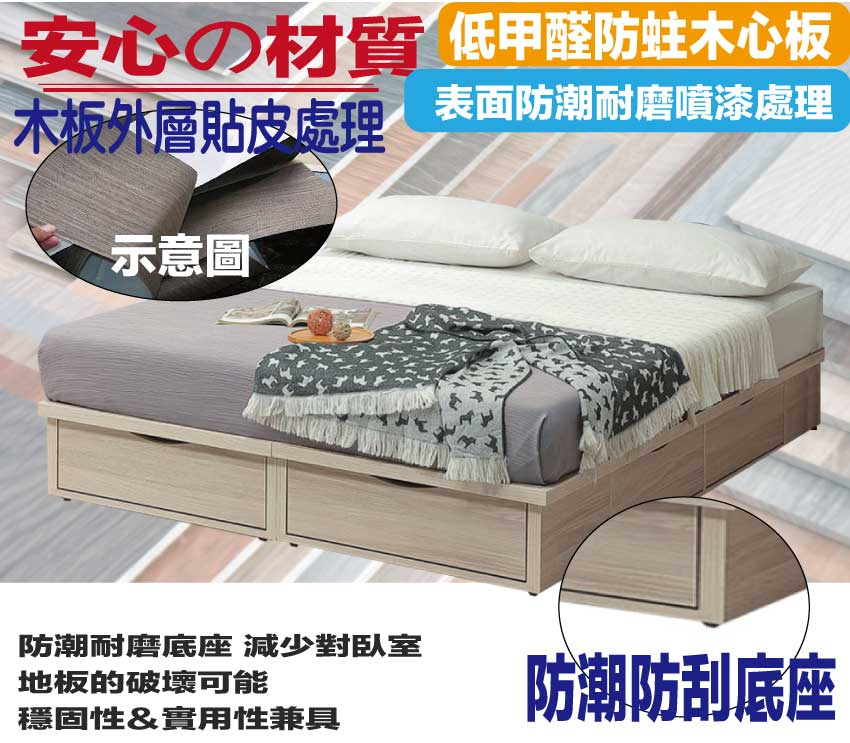 材質:防蛀木心板+六分木床板+防潮耐磨底座