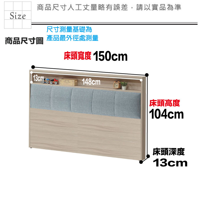 床頭尺寸:(寬)150x(深)13x(高)104/公分