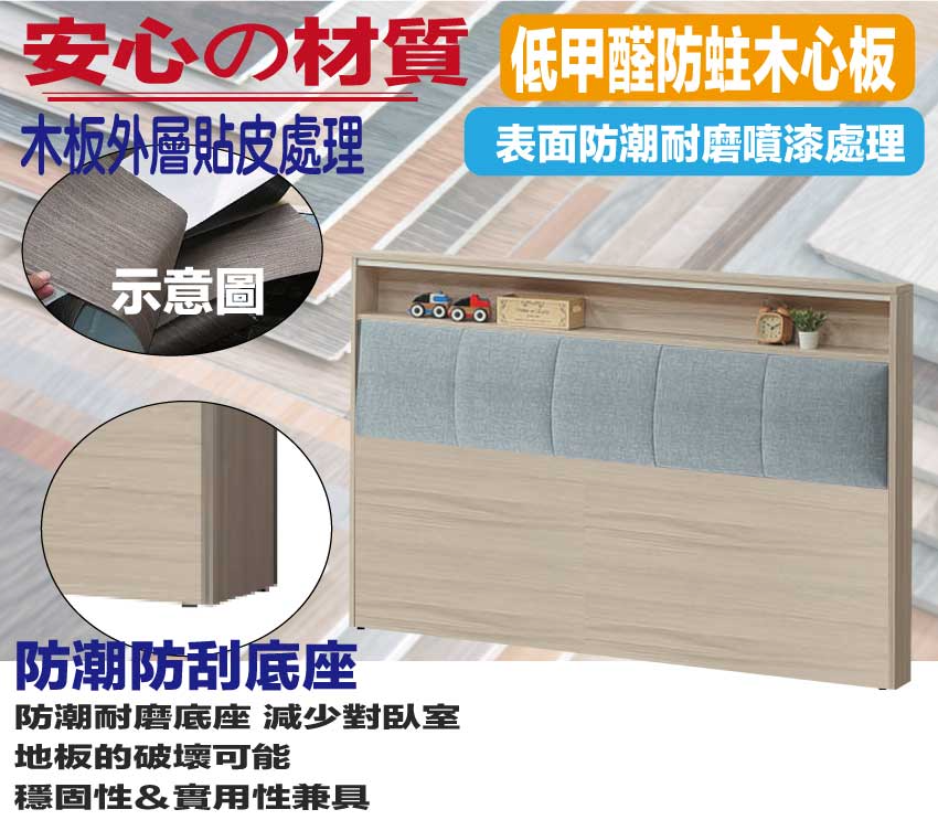 【綠家居】美斯5尺雙人貓抓布床頭片(不含床底+不含床墊) 橡木紋色系+安心材質製造,使用放心+搭配居家更便利,採用防蛀木心板+防潮耐磨底座+耐刮貓抓布+高回彈泡棉等安心材質製造 ,外層採用防潮耐磨噴漆處理搭配床頭開放收納層格收納空間設計,全由專人配送到家,專業安心服務,替你省下更多時間!
