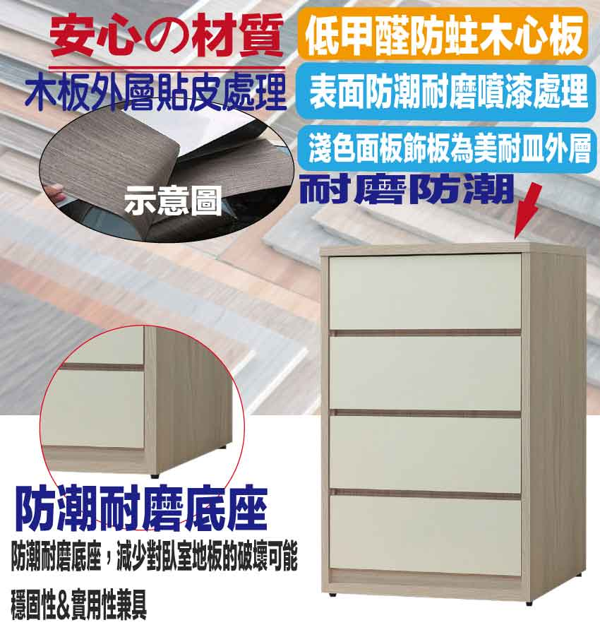 採用防蛀木心板+防潮耐磨底座+五金滑軌結構+防夾手緩衝五金等安心材質製造