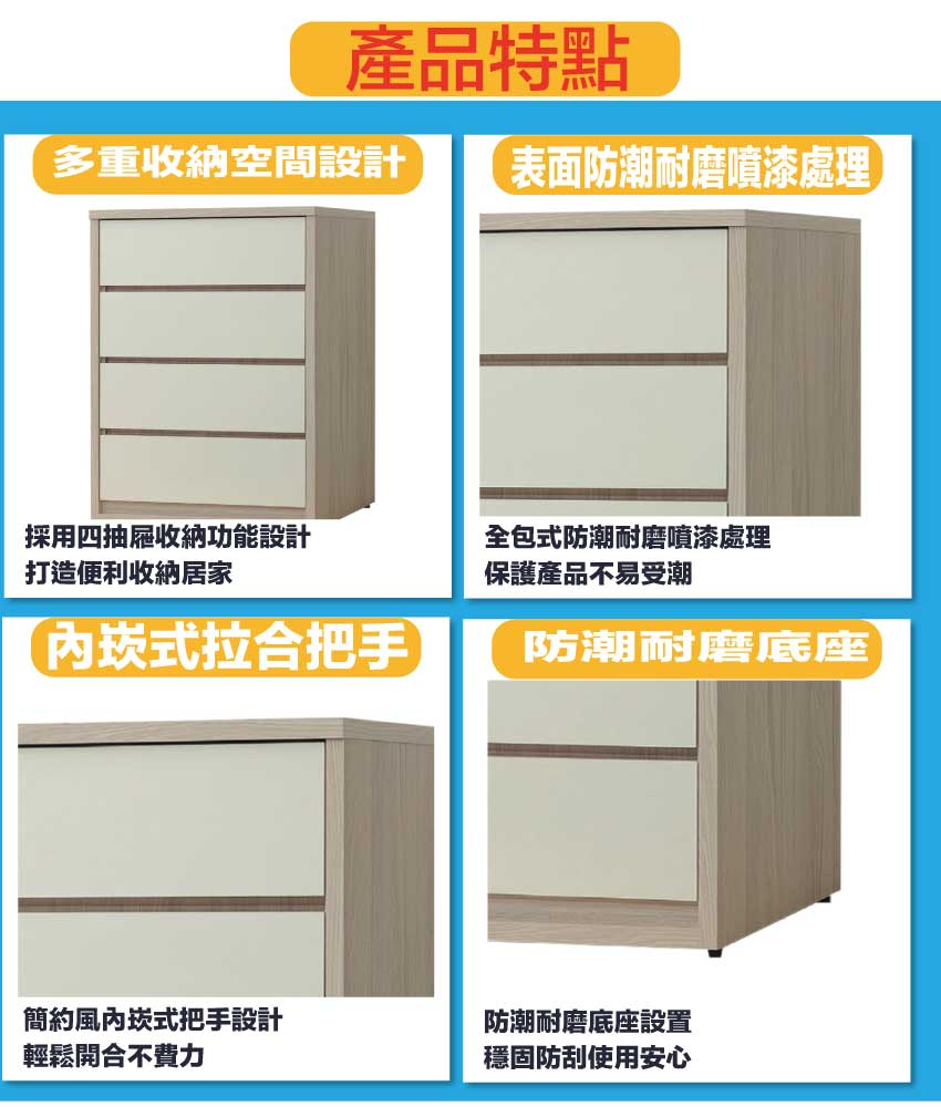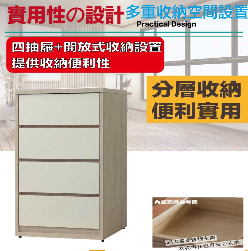 - ◆產品名稱:【綠家居】美斯3尺四抽斗櫃