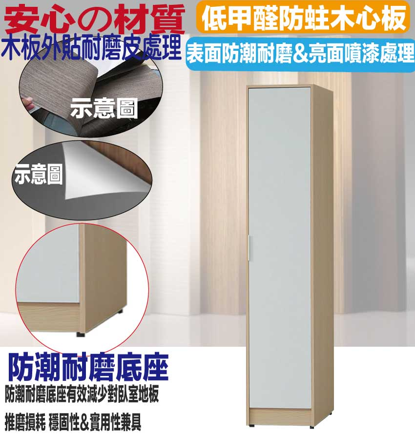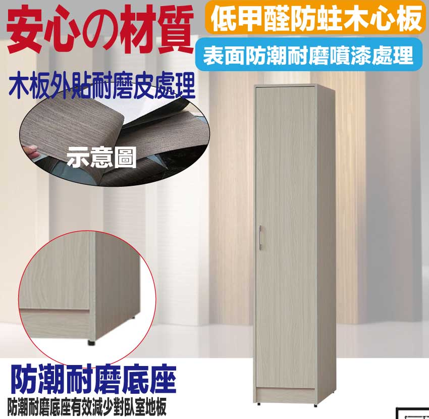【綠家居】普伊斯1.5尺單門衣櫃(二色可選) 二色可選+安心材質製造,使用放心+搭配居家更便利,採用防蛀木心板+防潮耐磨底座+防夾手緩衝門片五金等安心材質製造 ,外層採用防潮耐磨噴漆處理搭配採用開門櫃+內開放層格等收納空間設計,全由專人配送到家,專業安心服務,替你省下更多時間!