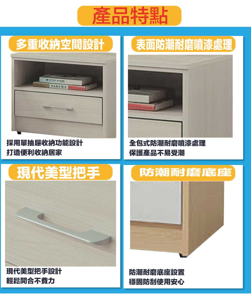 - ◆產品名稱:【綠家居】普伊斯1.6尺單抽床頭櫃(二色可選)