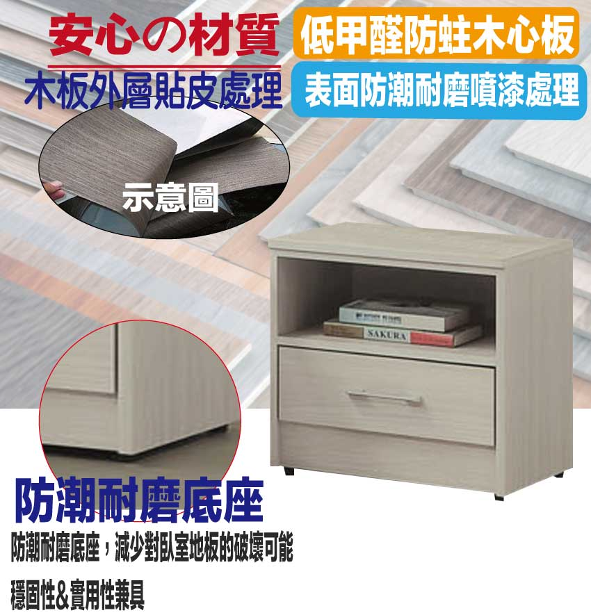 【綠家居】普伊斯1.6尺單抽床頭櫃(二色可選) 二色可選+安心材質製造,使用放心+搭配居家更便利,採用防蛀木心板+防潮耐磨底座+五金滑軌結構等安心材質製造 ,外層採用防潮耐磨噴漆處理搭配採用單抽屜+開放層格等收納空間設計,全由專人配送到家,專業安心服務,替你省下更多時間!