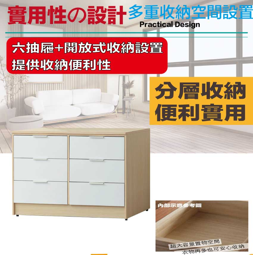 【綠家居】普伊斯4尺六抽斗櫃(二色可選) 二色可選+安心材質製造,使用放心+搭配居家更便利,採用防蛀木心板+防潮耐磨底座+五金滑軌結構等安心材質製造 ,外層採用防潮耐磨噴漆處理搭配採用六抽屜+開放層格等收納空間設計,全由專人配送到家,專業安心服務,替你省下更多時間!