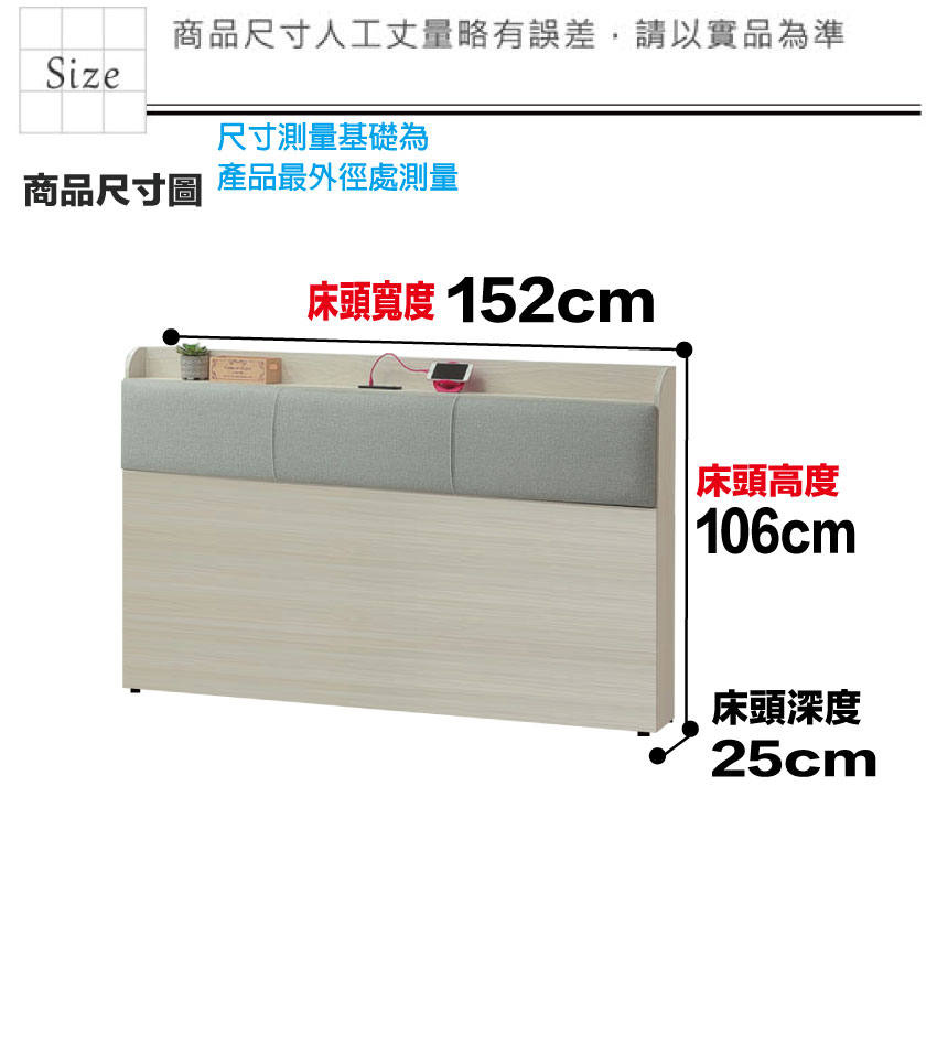 床頭尺寸:(寬)152x(深)25x(高)106/公分