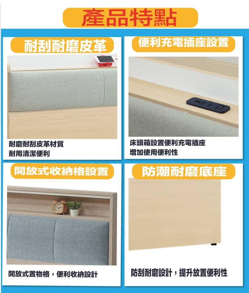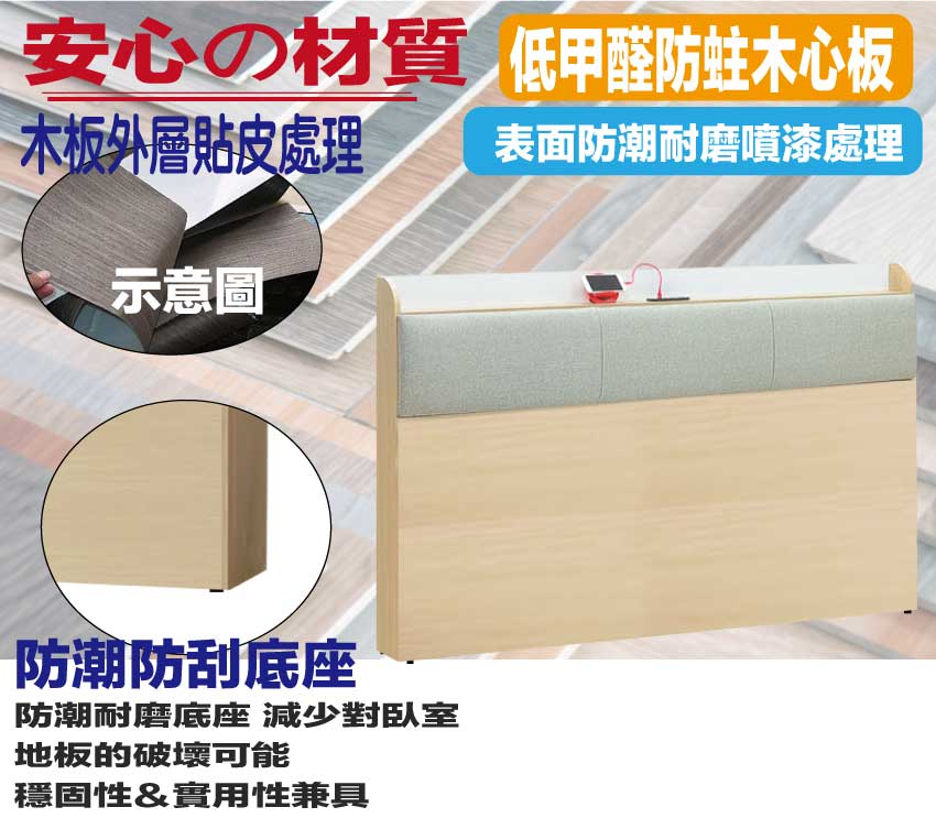 材質:防蛀木心板+防潮耐磨底座+耐磨耐刮皮革+高回彈泡棉