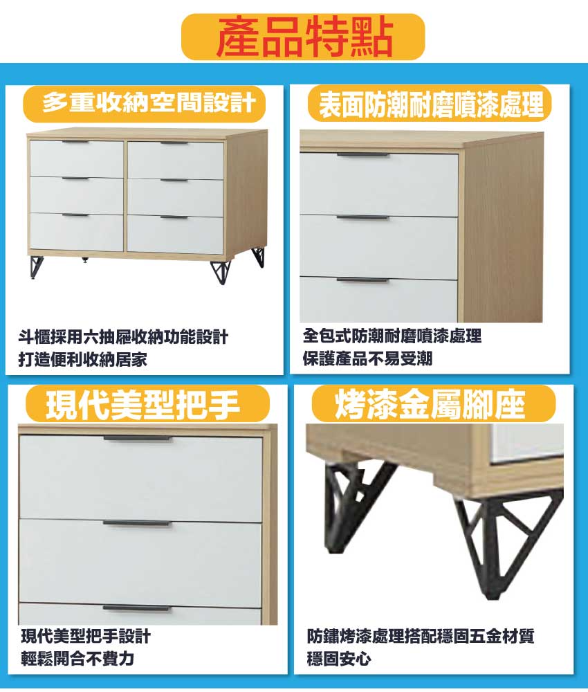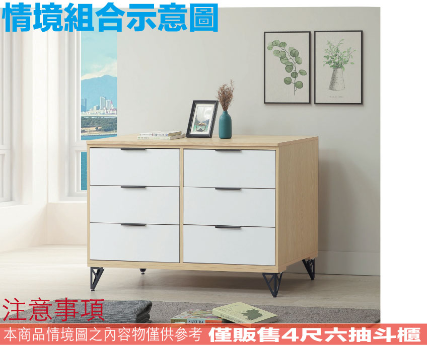 - ◆產品名稱:【綠家居】普伊斯4尺鐵腳六抽斗櫃