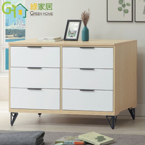 【綠家居】普伊斯4尺鐵腳六抽斗櫃 木紋雙色系+安心材質製造,使用放心+搭配居家更便利,採用防蛀木心板+烤漆五金腳座+五金滑軌結構等安心材質製造 ,外層採用防潮耐磨噴漆處理搭配採用六抽屜+開放層格等收納空間設計,全由專人配送到家,專業安心服務,替你省下更多時間!