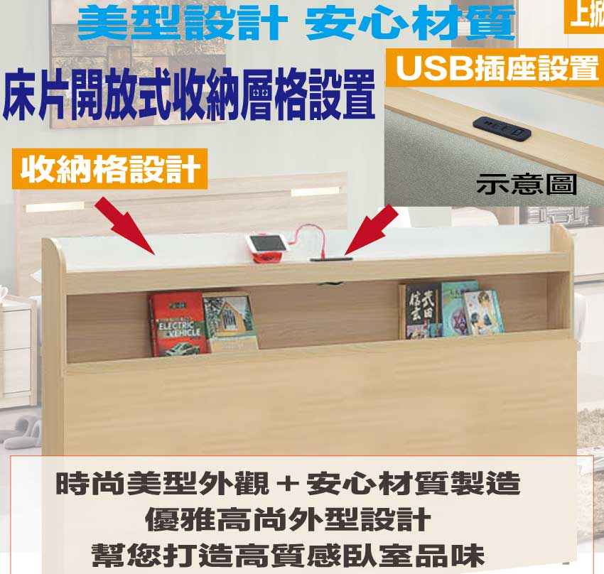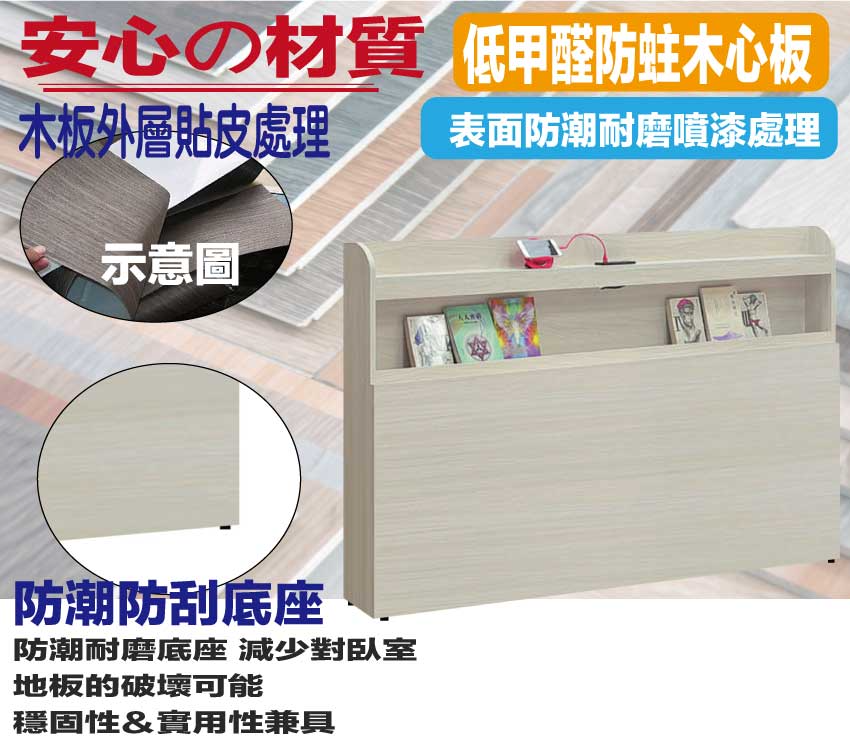 - ◆產品名稱:【綠家居】普伊斯5尺雙人插座可收納床頭片(二色可選)