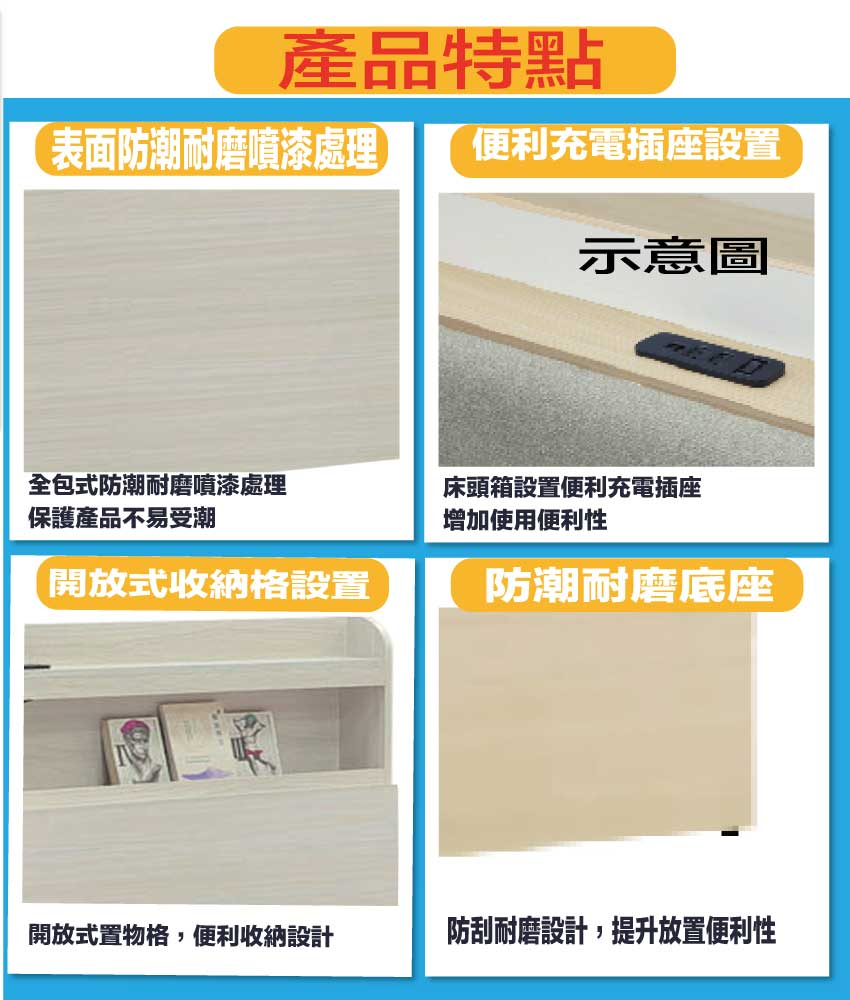 - ◆產品名稱:【綠家居】普伊斯6尺雙人加大插座可收納床頭片(二色可選)