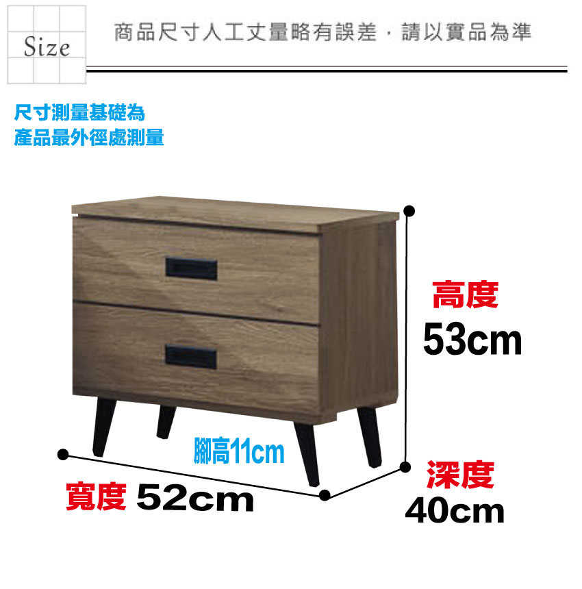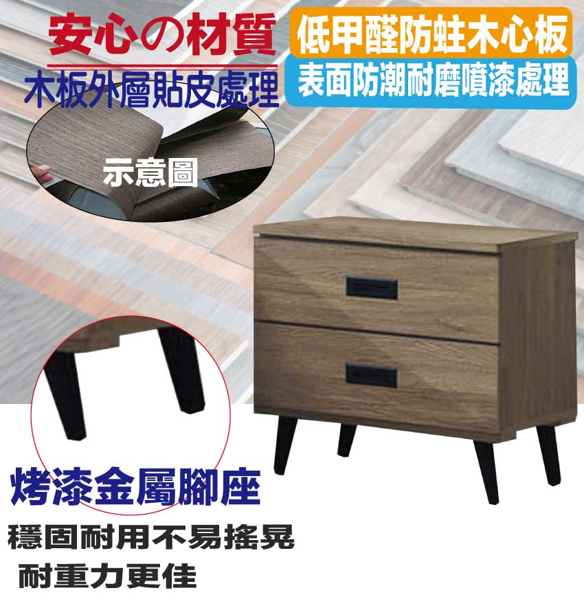 - ◆產品名稱:【綠家居】格斯1.7尺二抽鐵腳床頭櫃