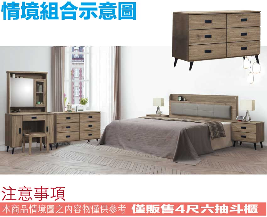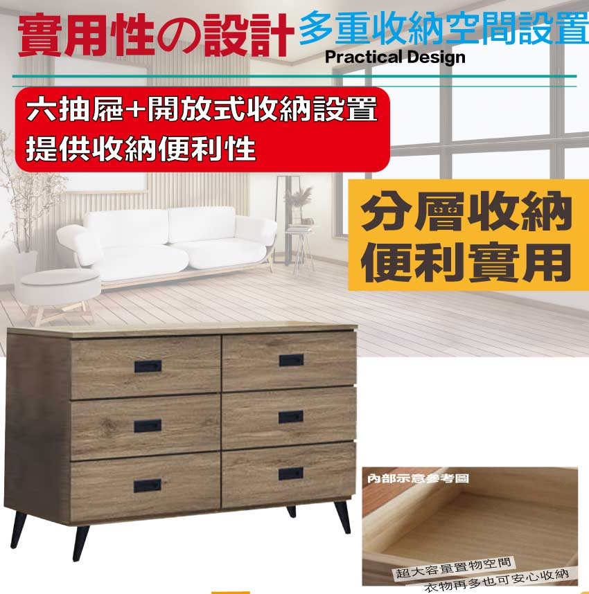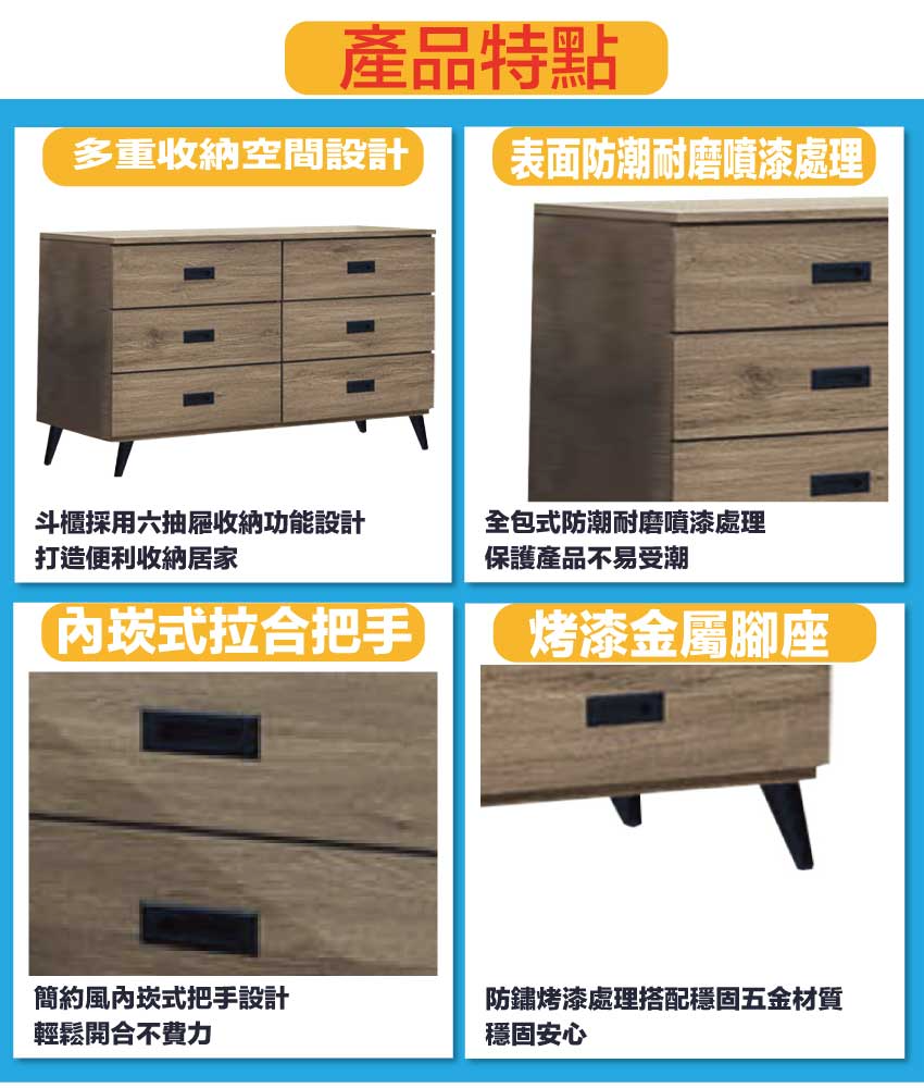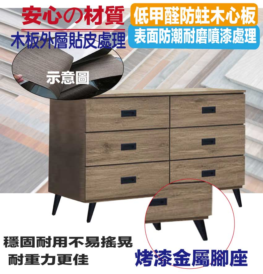 - ◆產品名稱:【綠家居】格斯4尺六抽鐵腳斗櫃