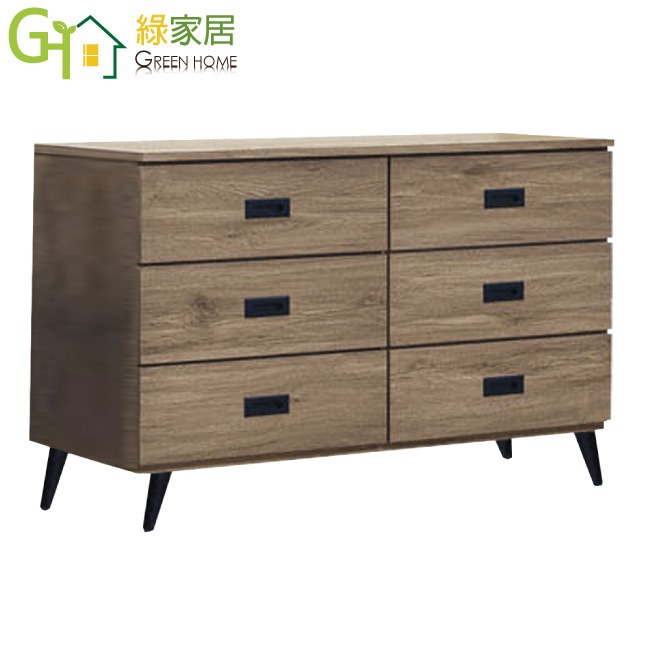 【綠家居】格斯4尺六抽鐵腳斗櫃 灰橡木紋色系+安心材質製造,使用放心+搭配居家更便利,採用防蛀木心板+烤漆五金腳座+五金滑軌結構等安心材質製造 ,外層採用防潮耐磨噴漆處理搭配採用六抽屜+開放層格等收納空間設計,全由專人配送到家,專業安心服務,替你省下更多時間!