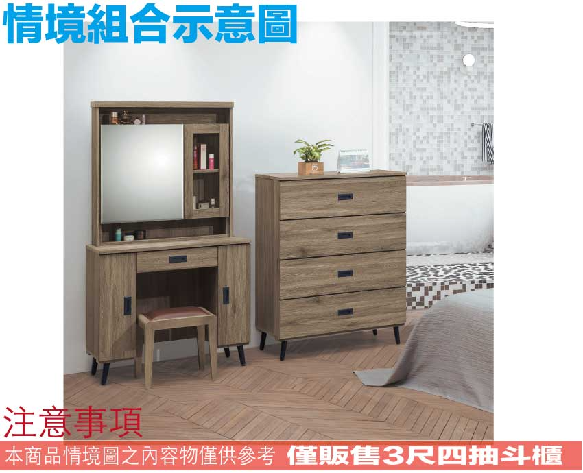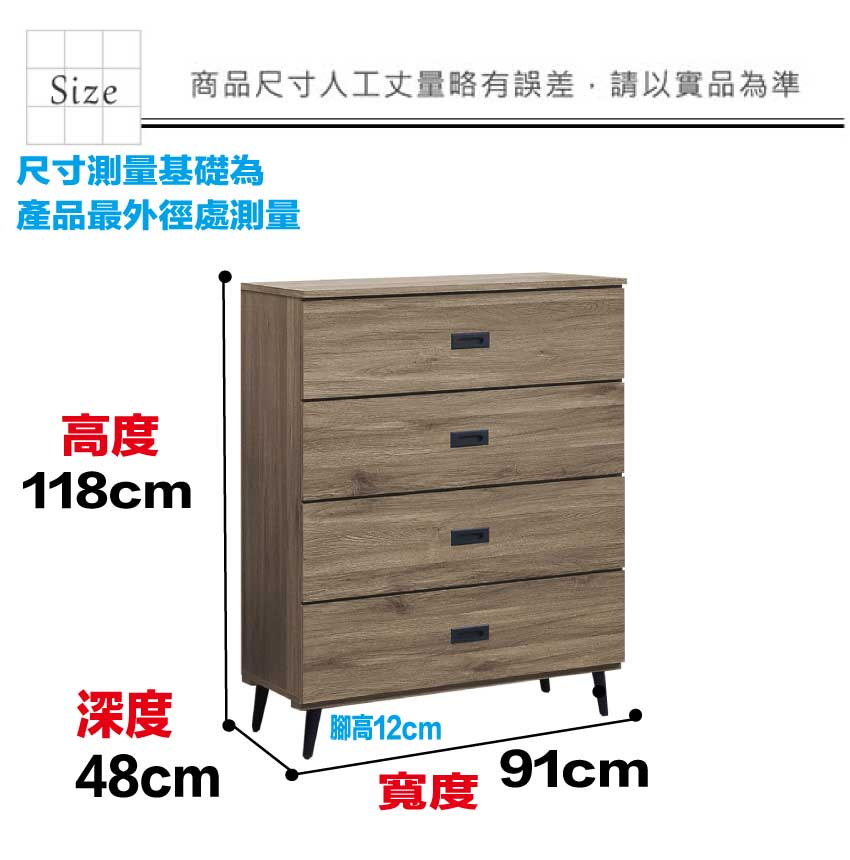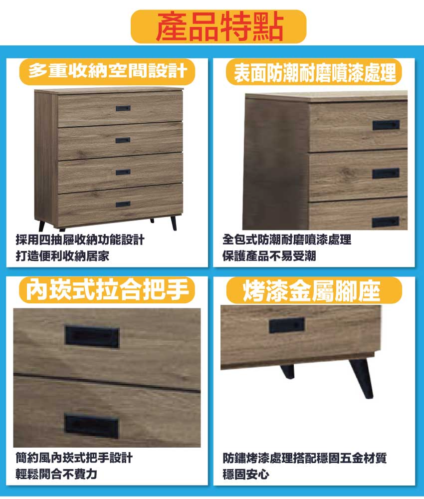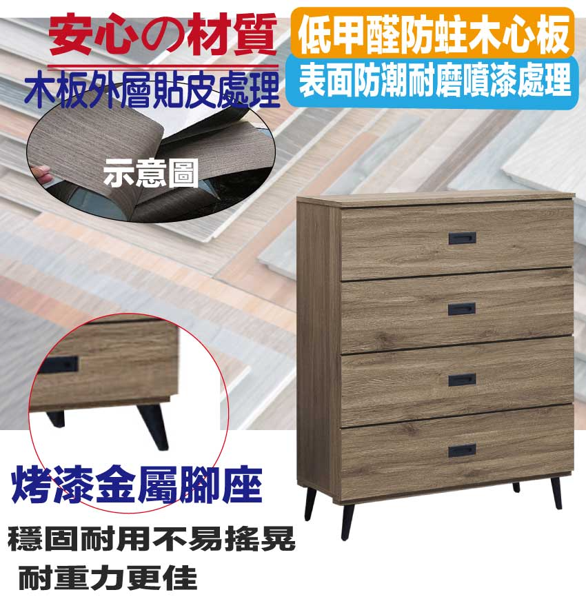 - ◆產品名稱:【綠家居】格斯3尺四抽鐵腳斗櫃