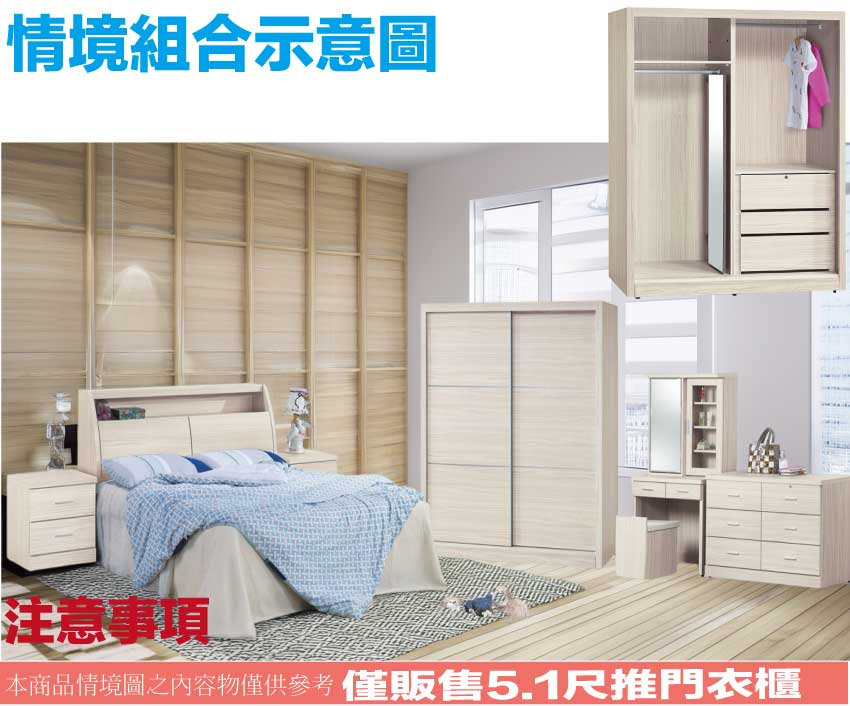 【綠家居】包格斯5.1尺推門衣櫃(內含穿衣鏡面) 白梣木紋色系+安心材質製造,使用放心+搭配居家更便利,採用防蛀木心板+防潮耐磨底座+五金滑軌結構+強化玻璃鏡面等安心材質製造 ,外層採用防潮耐磨噴漆處理搭配採用推門櫃+吊衣桿+三抽屜+內開放層格+內含側拉穿衣鏡面等收納空間設計,全由專人配送到家,專業安心服務,替你省下更多時間!