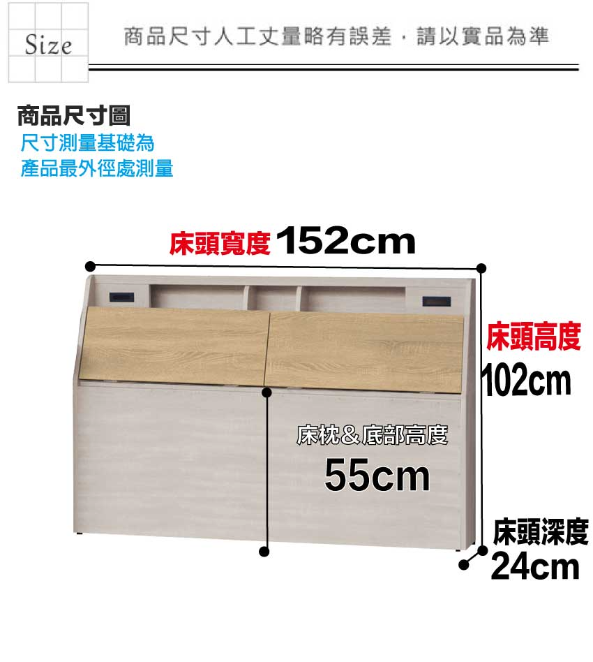 床頭尺寸:(寬)152x(深)24x(高)102/公分