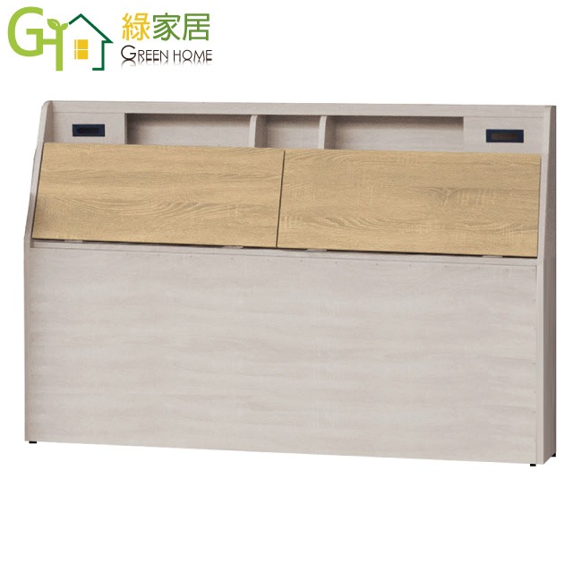 【綠家居】伊考斯5尺雙人雙色床頭箱 木紋雙色系+安心材質製造,使用放心+搭配居家更便利,採用防蛀木心板+防潮耐磨底座等安心材質製造 ,外層採用防潮耐磨噴漆處理搭配床頭採用可掀式床枕板+內&外收納空間+USB便利插座等收納空間設計,全由專人配送到家,專業安心服務,替你省下更多時間!
