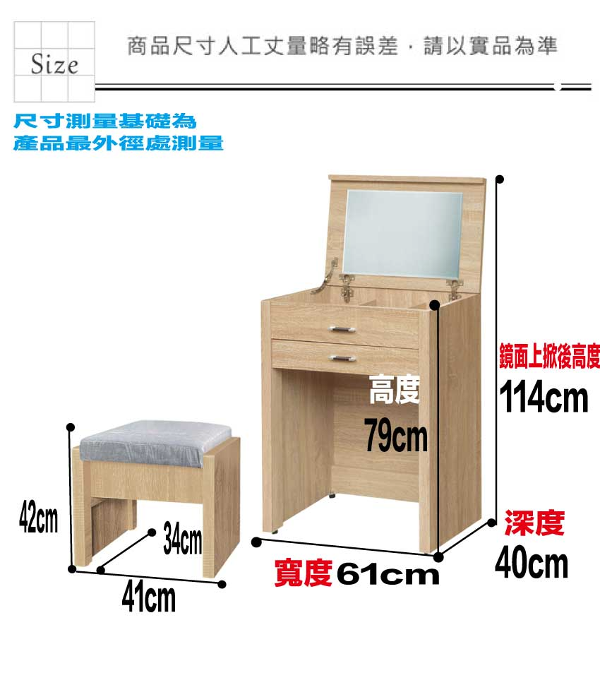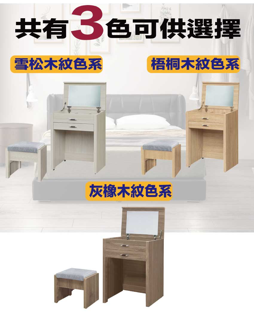 - ◆產品名稱:【綠家居】華格斯2尺上掀鏡面單抽鏡台組合(三色可選+含化妝椅)