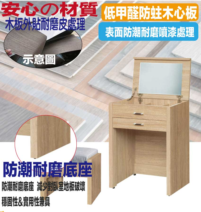 採用防蛀木心板+防潮耐磨底座+強化玻璃鏡面等安心材質製造